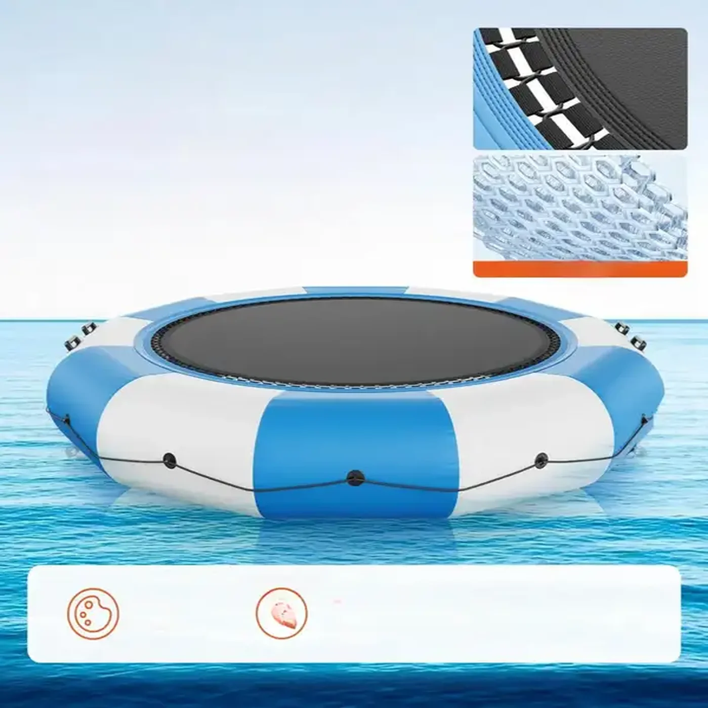 Niech każdy dzień nad wodą stanie się letnią przygodą! Dmuchana trampolina wodna o średnicy 415 cm to prawdziwy hit rodzinnych wypadów i wakacyjnych imprez. Stworzona z myślą o bezpieczeństwie i trwałości, zapewnia dużą powierzchnię do skakania, odpoczynku i dryfowania. Dzięki mocnym materiałom i przemyślanej konstrukcji, nadaje się zarówno dla dzieci, jak i dorosłych.