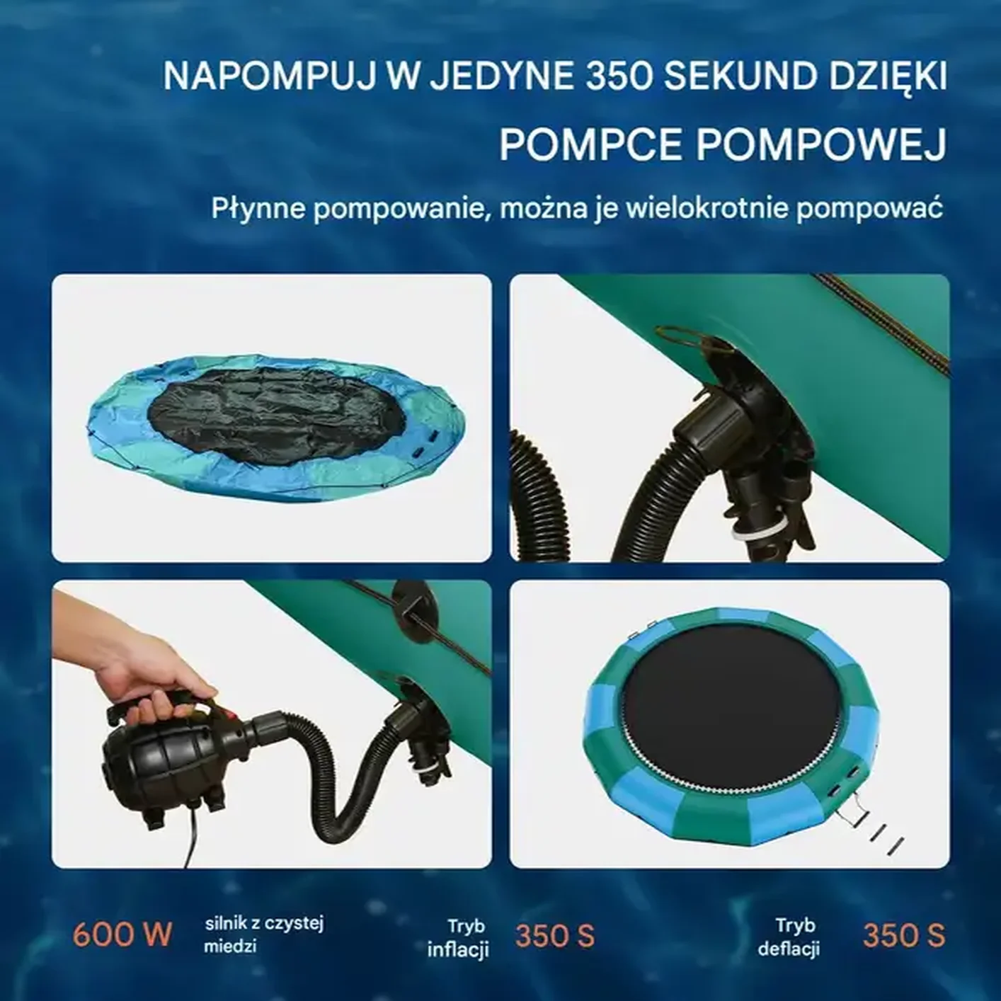 Start / Sklep / Sport i turystyka / Turystyka / Akcesoria / Pompki / Dmuchana trampolina wodna + pompka elektryczna 470 cm