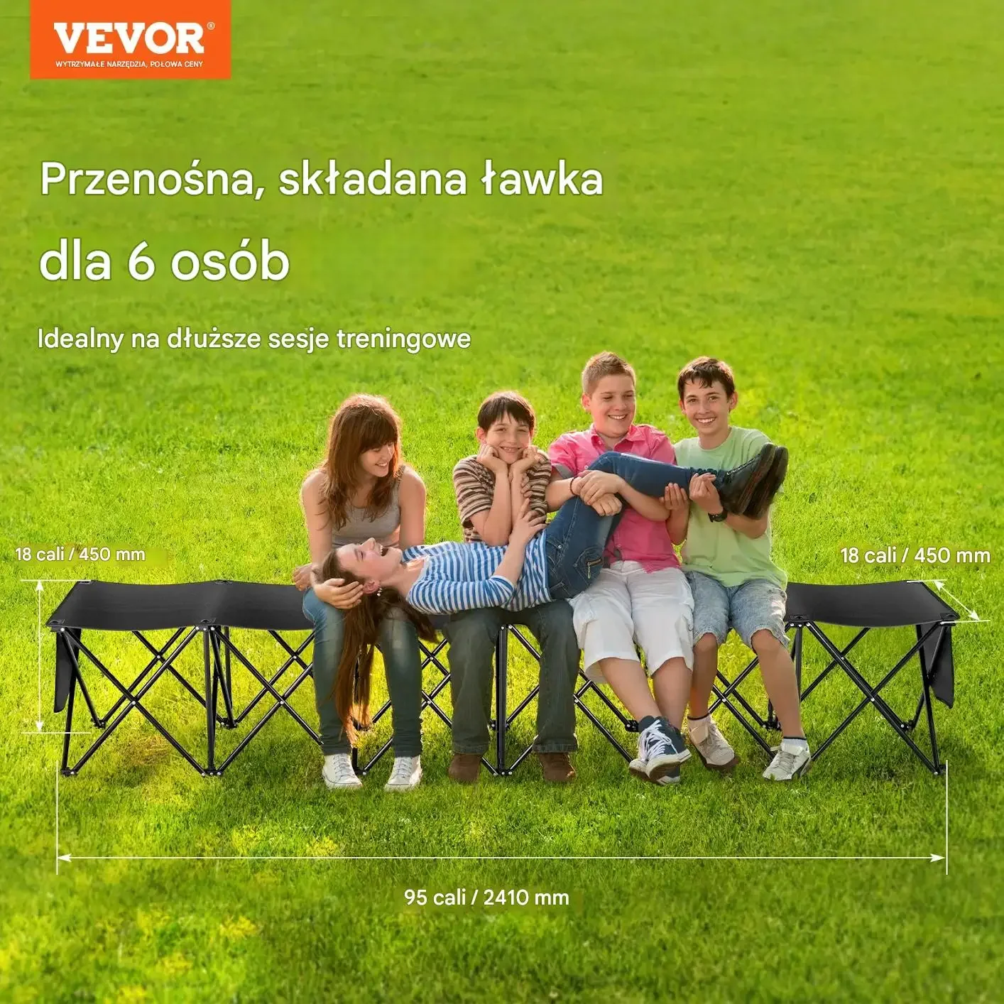 Start / Sklep / Sport i turystyka / Turystyka / Meble turystyczne / Krzesła / Ławka krzesła składane przenośna 6-osobowa z torbą kieszenie boisko