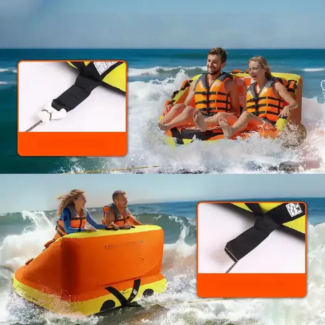 Dzięki dwóm punktom holowniczym – z przodu i z tyłu – tuba umożliwia różnorodne wrażenia z jazdy. Przedni punkt pozwala na spokojne dryfowanie, idealne do relaksu, natomiast tylny punkt dostarcza emocjonujących przeżyć podczas dynamicznej jazdy na macie EVA.