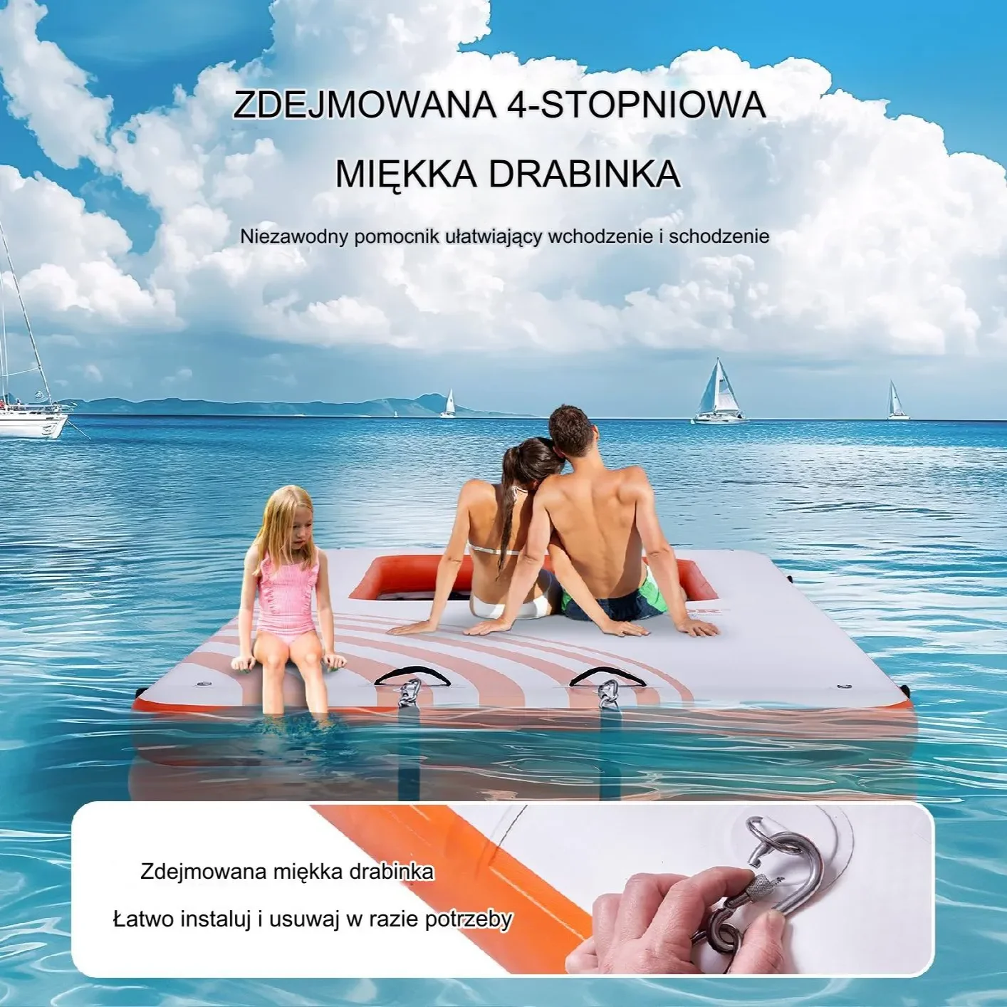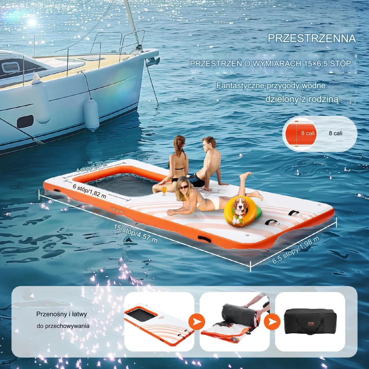 - Nadmuchiwana tratwa pływająca (4,57 x 1,98 m)