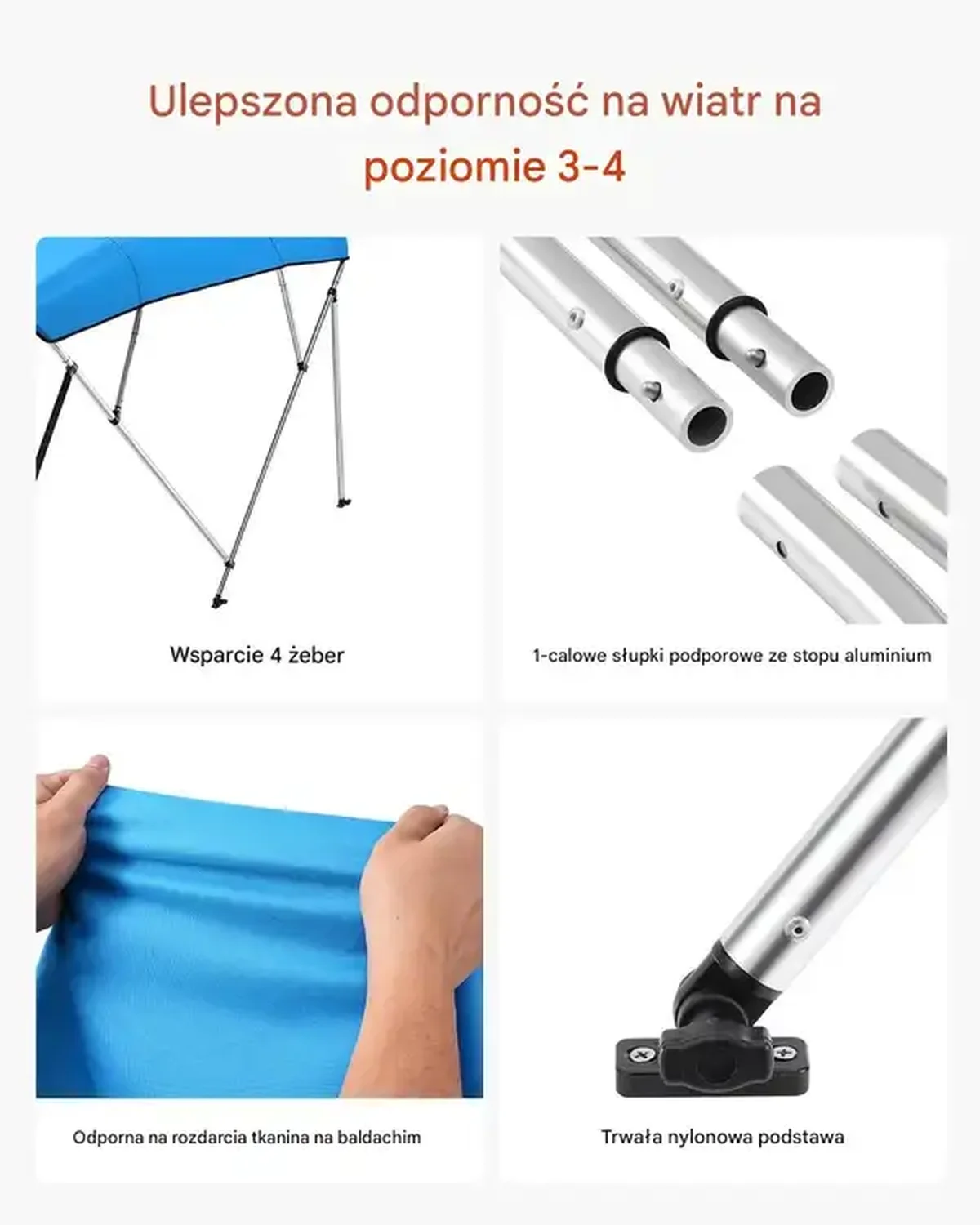 - ✅ Odporność na wiatr: Wytrzymuje podmuchy do 72 km/h dzięki solidnym 1-calowym aluminiowym rurkom i łącznikom