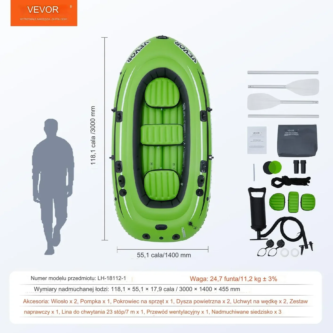 ✅ Kompletny zestaw — wiosła, pompka, lina, siedzenia oraz zestaw naprawczy