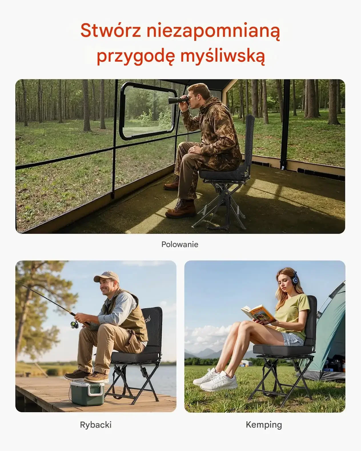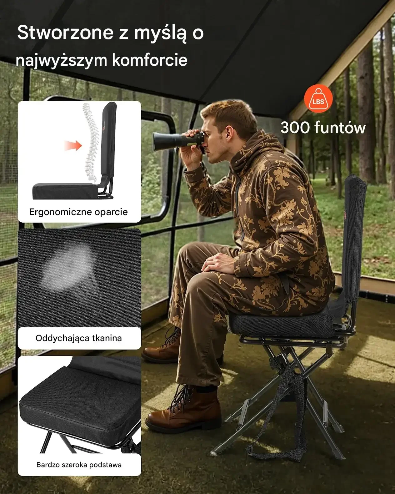 • Idealne do polowań: Zakup krzesła zapewnia wygodę i stabilność podczas długiego oczekiwania na zdobycz
