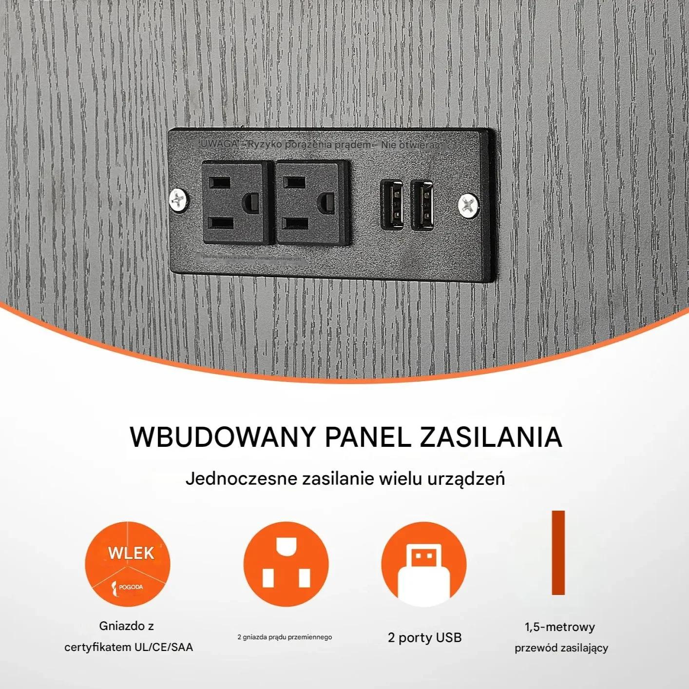 - ✅ Zintegrowany panel zasilania dla wygodnego podłączenia urządzeń