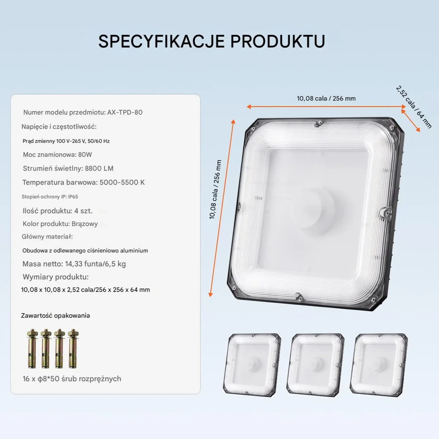 - ✅ Strumień świetlny 16500 lm – intensywne i równomierne oświetlenie