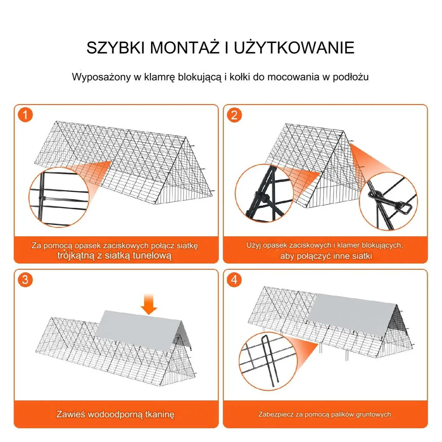 • ✅ Łatwy do montażu i demontażu dzięki zamkom, palikom i opaskom zaciskowym, co ułatwia przenoszenie i dostosowanie lokalizacji