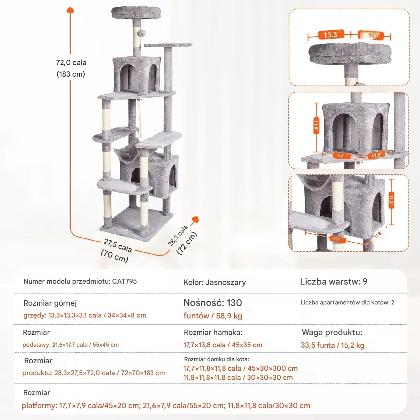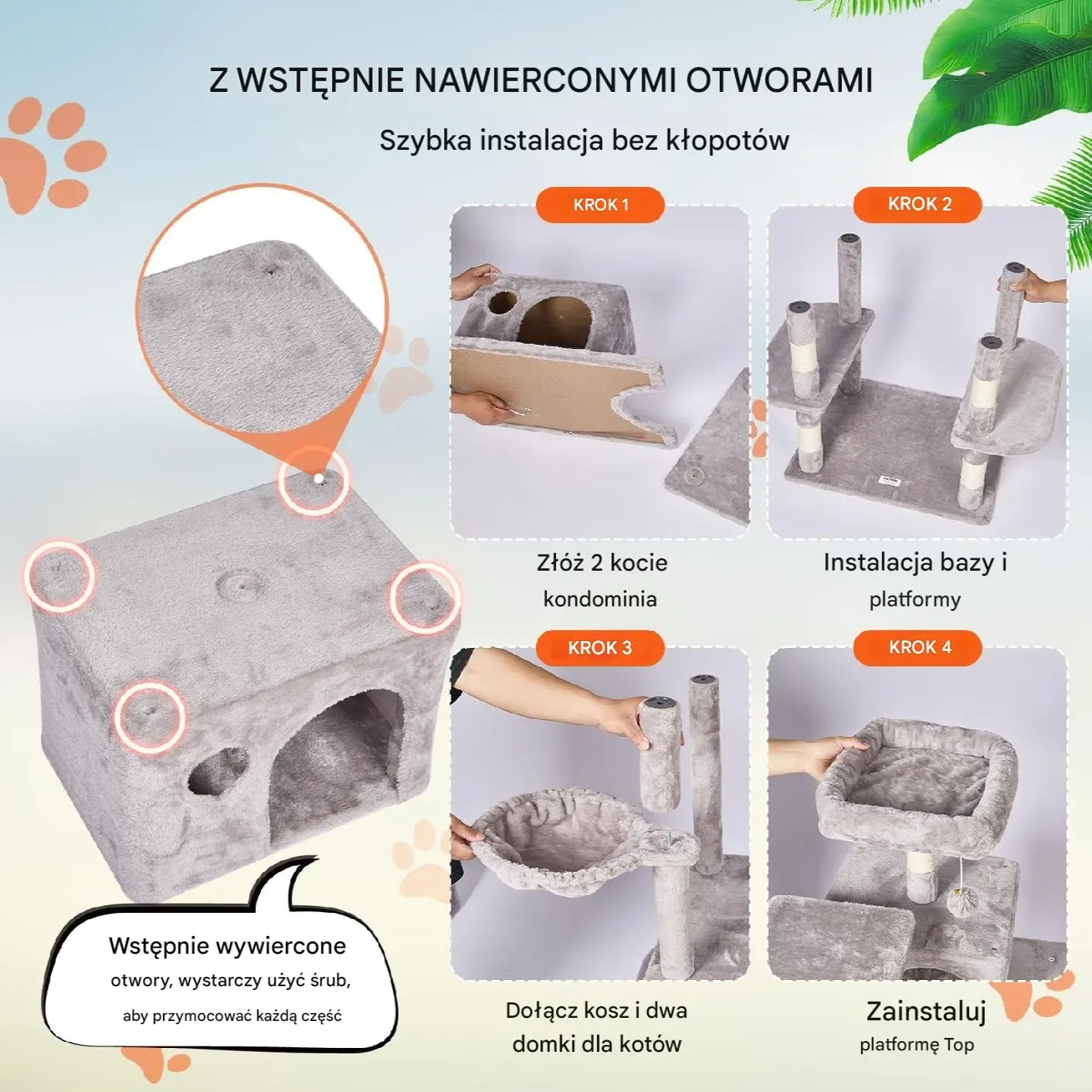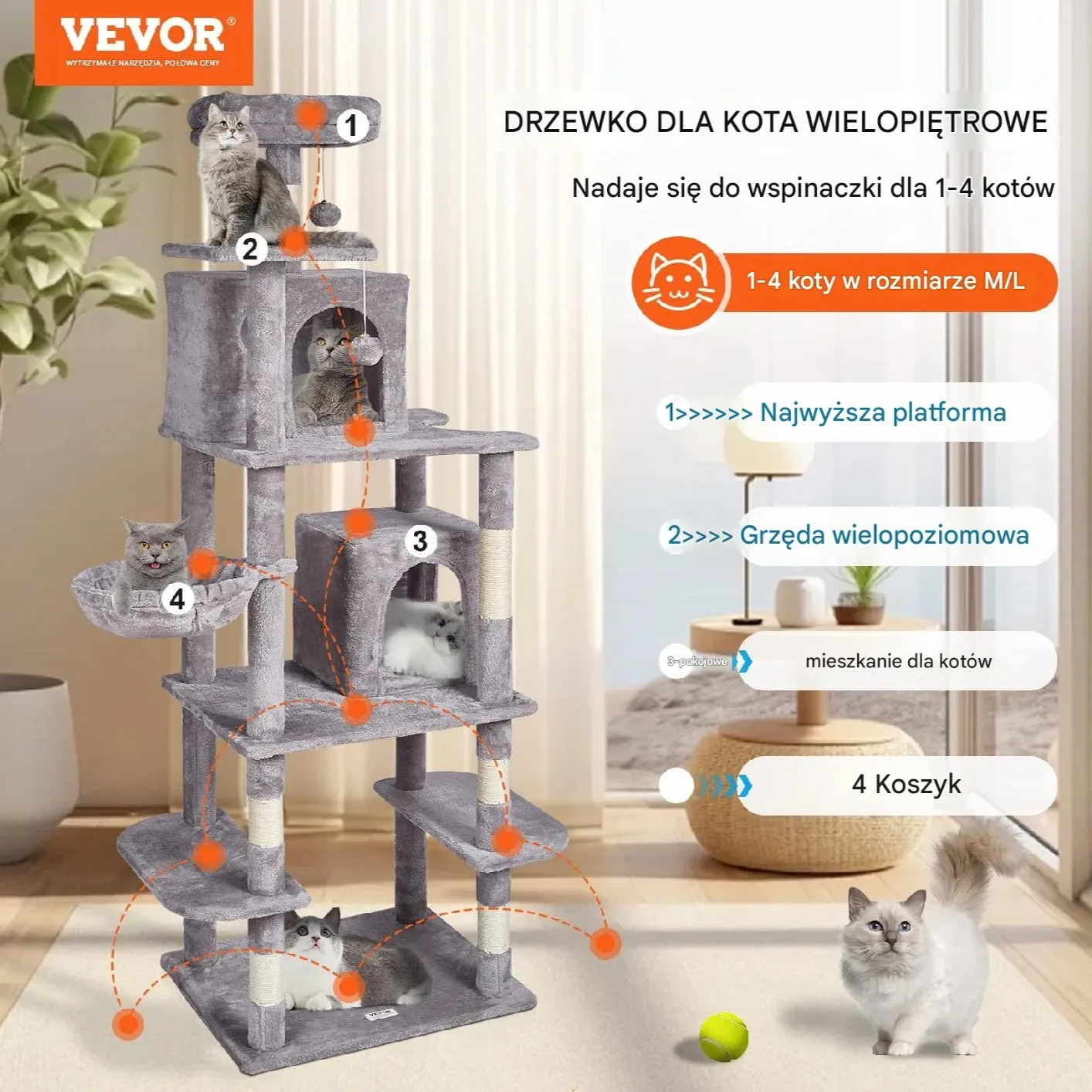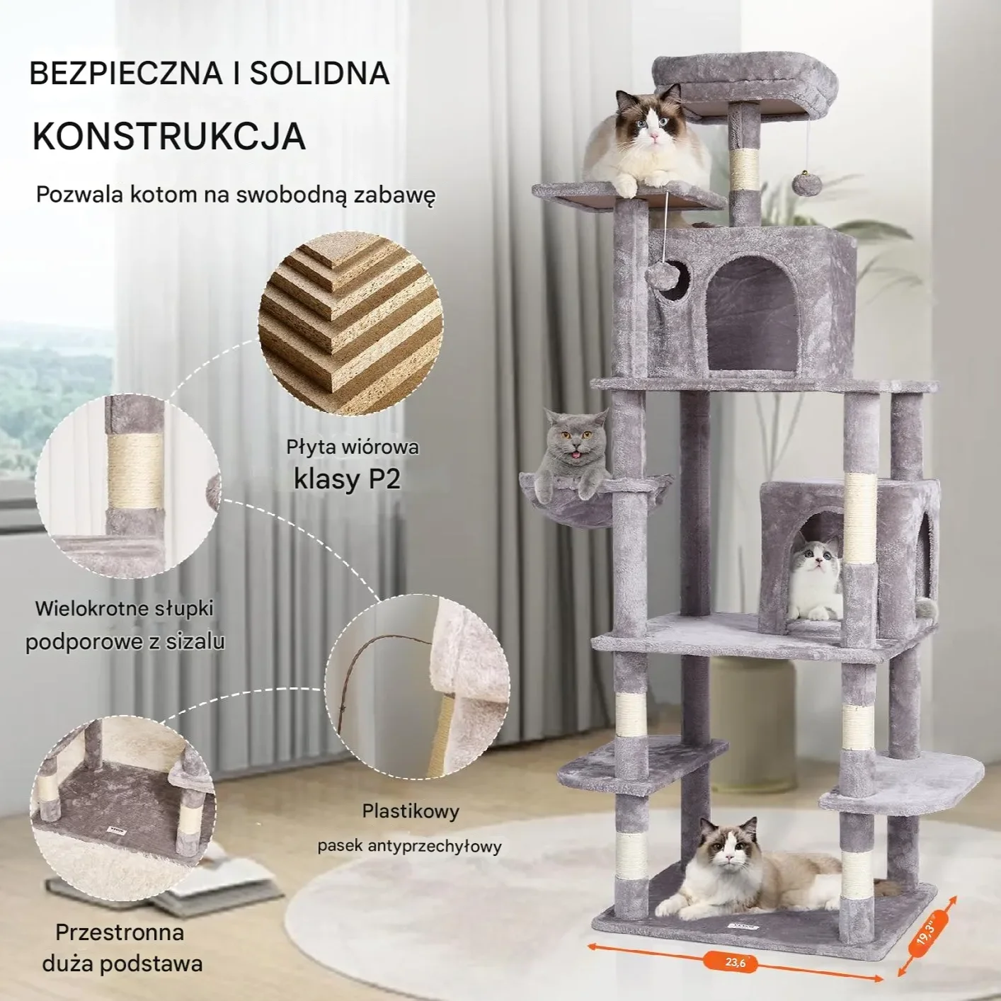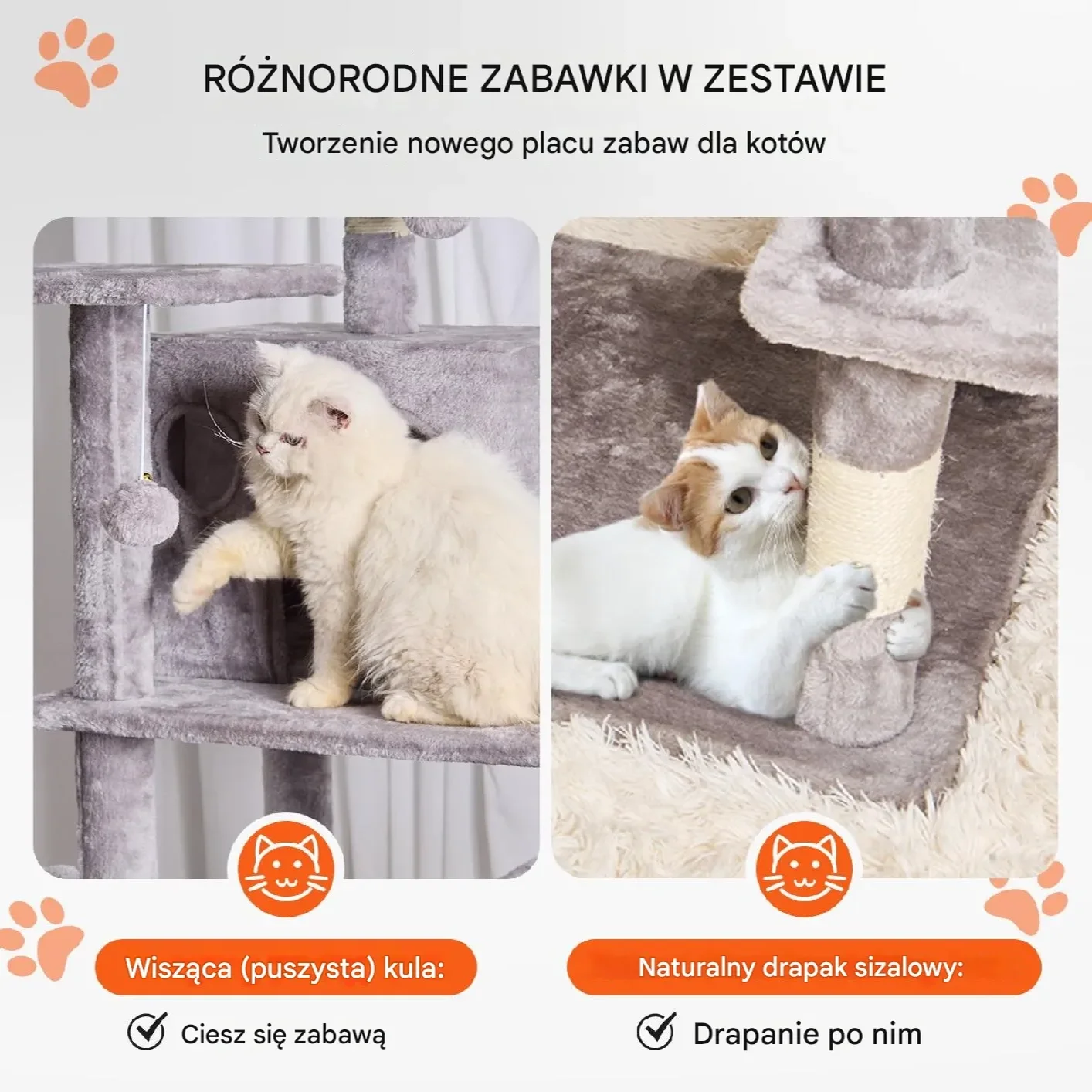 - ✅ Sizalowe słupki do drapania i ćwiczeń, zapobiegające niszczeniu mebli