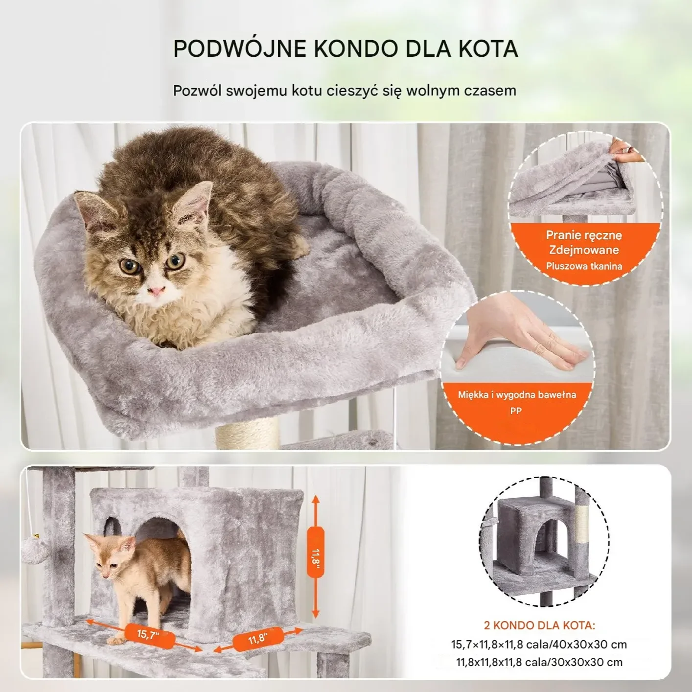- ✅ Miękkie pluszowe powierzchnie przyjazne dla skóry i pazurów kotów
