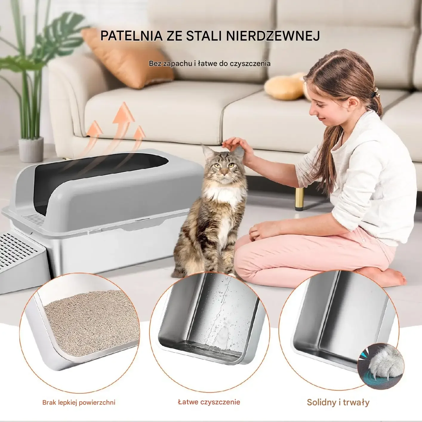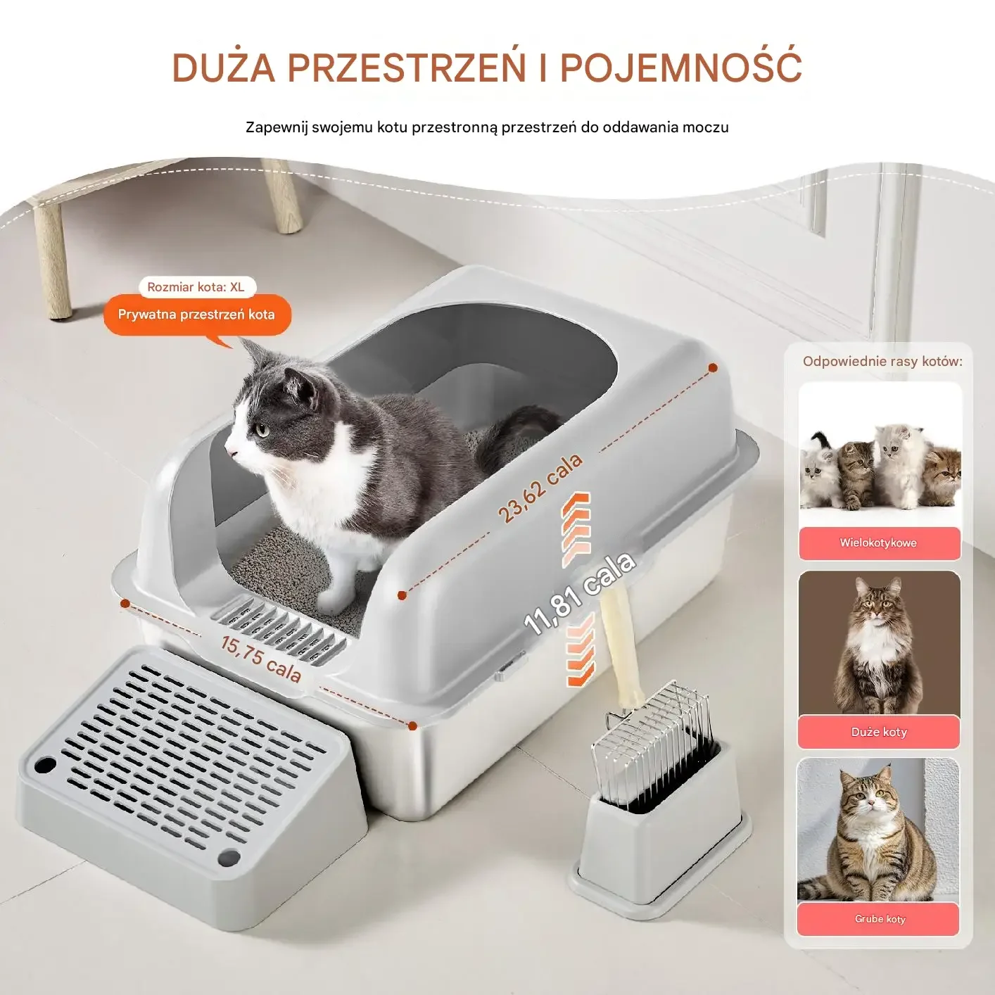 Kuweta ze Stali Nierdzewnej XL – Przemyślana Konstrukcja dla Komfortu Twojego Kota