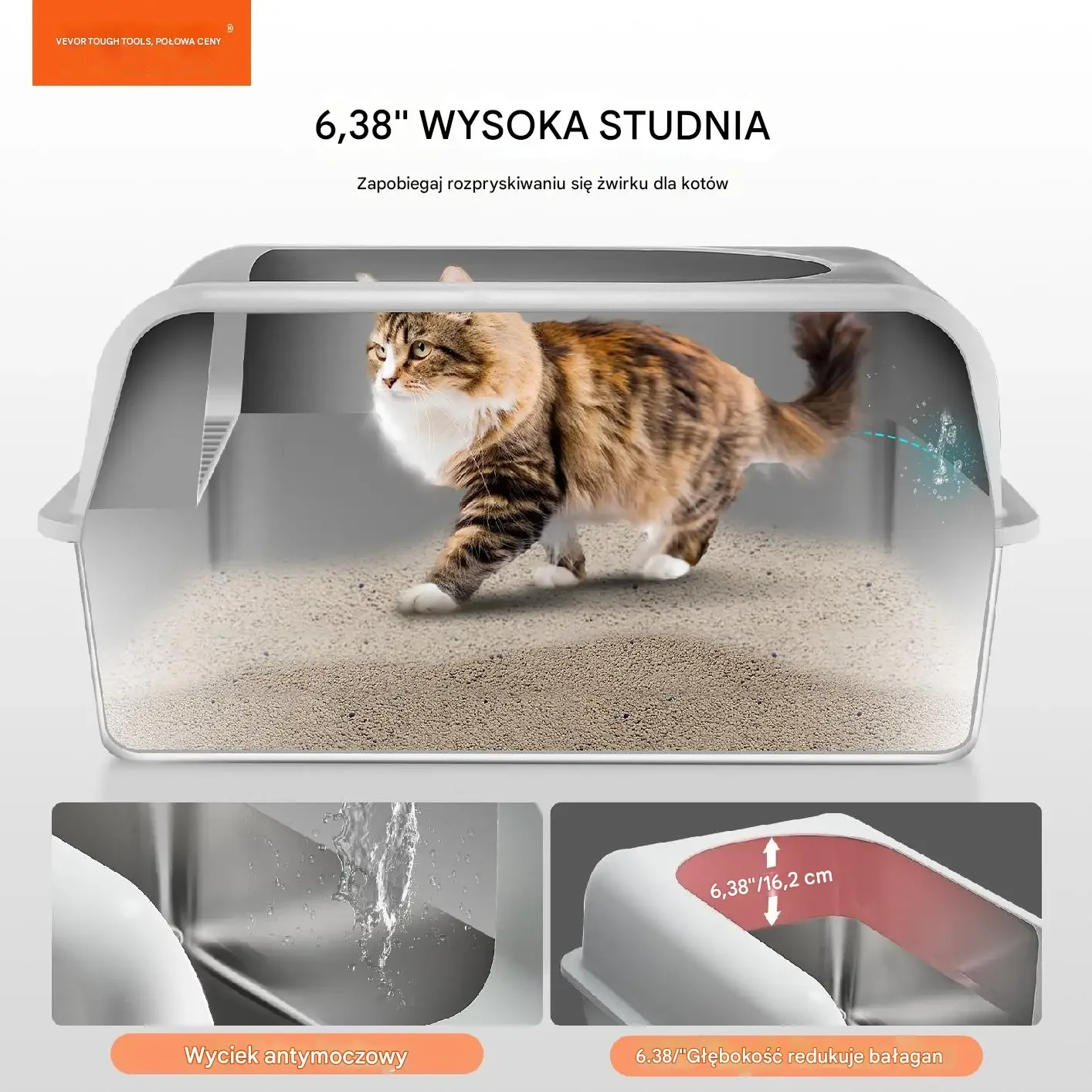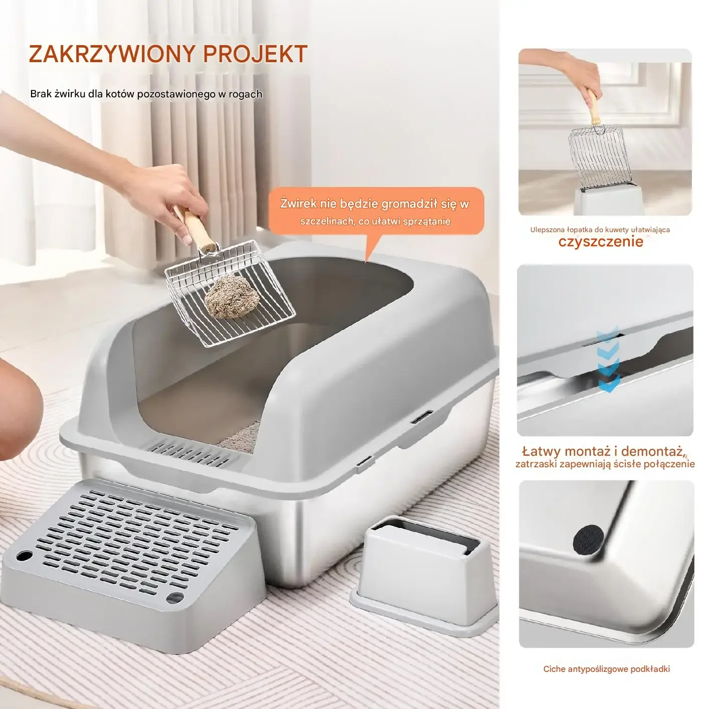 Wybierz kuwetę ze stali nierdzewnej o dużej pojemności i przemyślanej konstrukcji, która zapewni Twojemu kotu komfort, higienę oraz bezpieczeństwo. Solidne wykonanie i praktyczne funkcje sprawiają, że utrzymanie czystości jest łatwe i wygodne. Zamów już dziś i zapewnij swojemu pupilowi najlepsze warunki!
