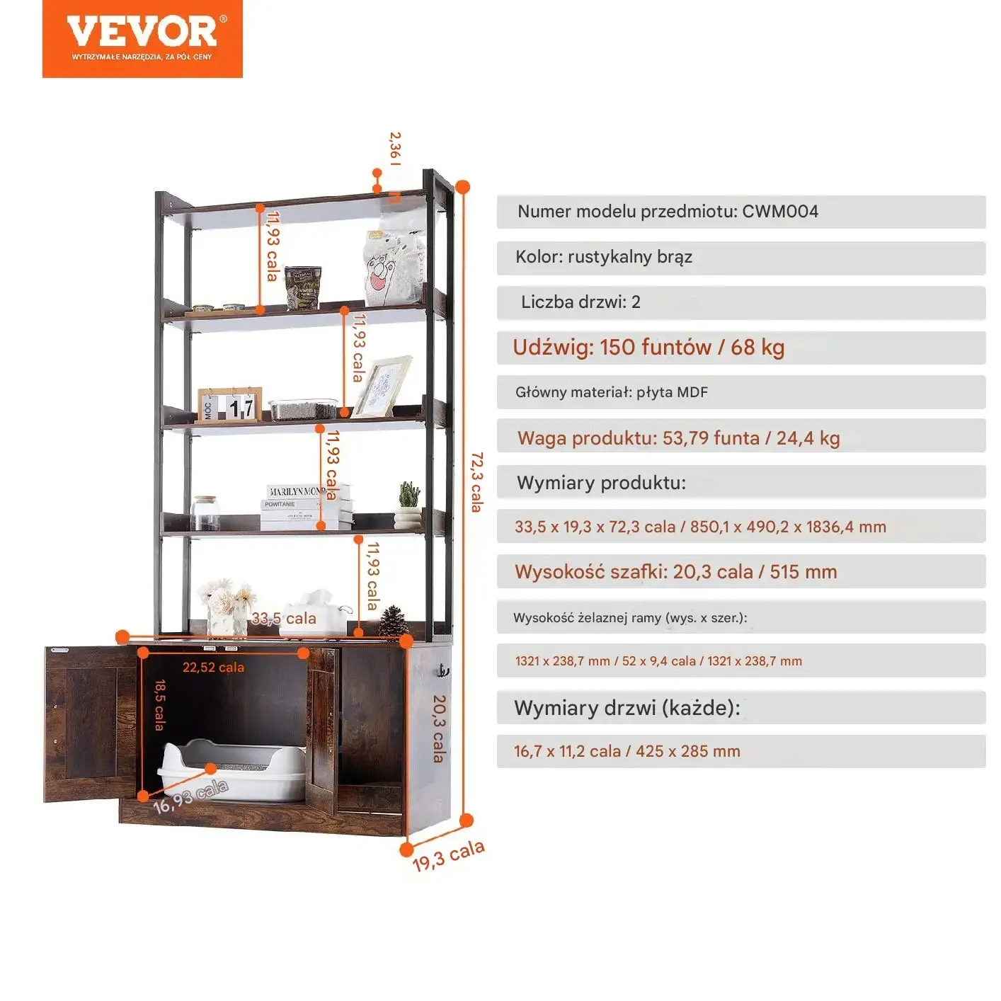 Zapewnia przestronną przestrzeń dla kota, umożliwiając mu swobodne korzystanie z kuwety: