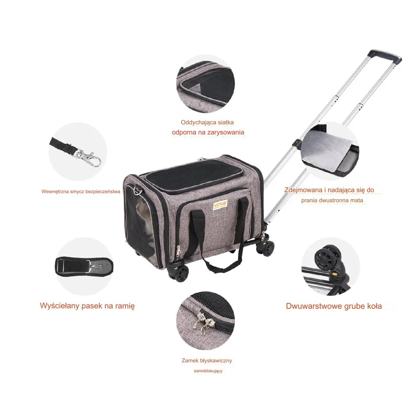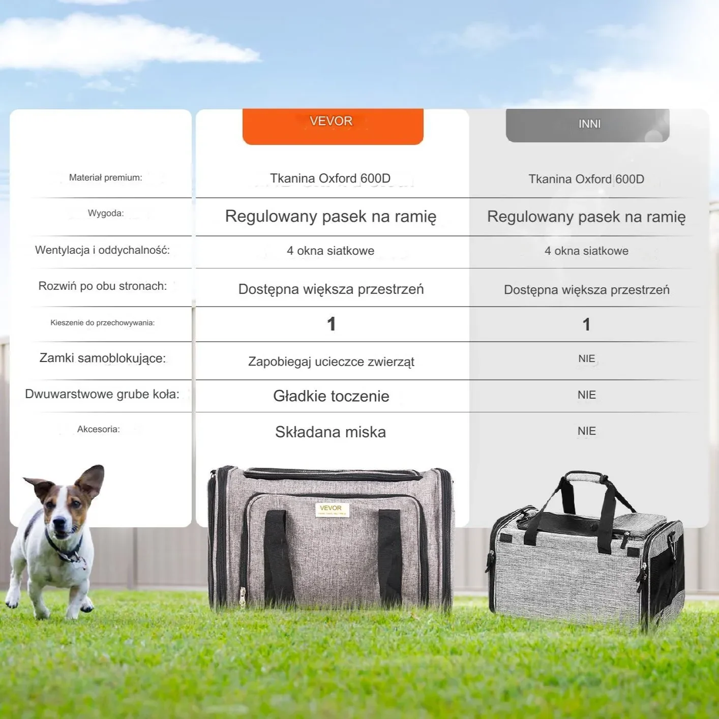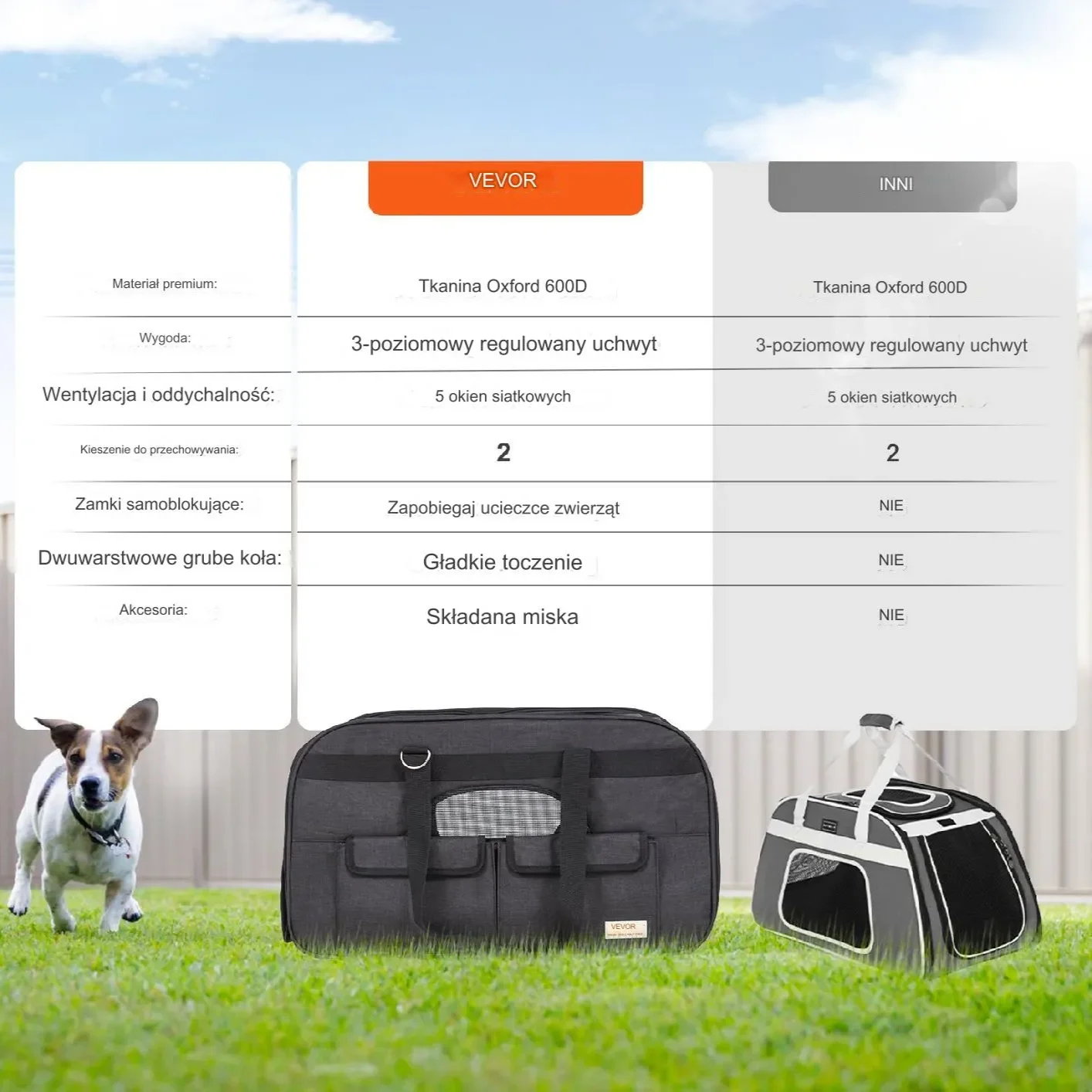 Transporter dla zwierząt wykonany z pogrubionej tkaniny Oxford 600D gwarantuje długotrwałe użytkowanie. Przeznaczony do przewożenia małych zwierząt o wadze do 11,3 kg, idealny na podróże samochodem lub wycieczki do weterynarza.