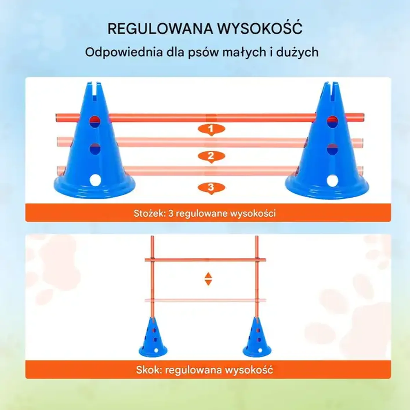 - ✅ Wielofunkcyjność: Pachołki i drążki można dowolnie łączyć, dostosowując przeszkody do umiejętności psa.