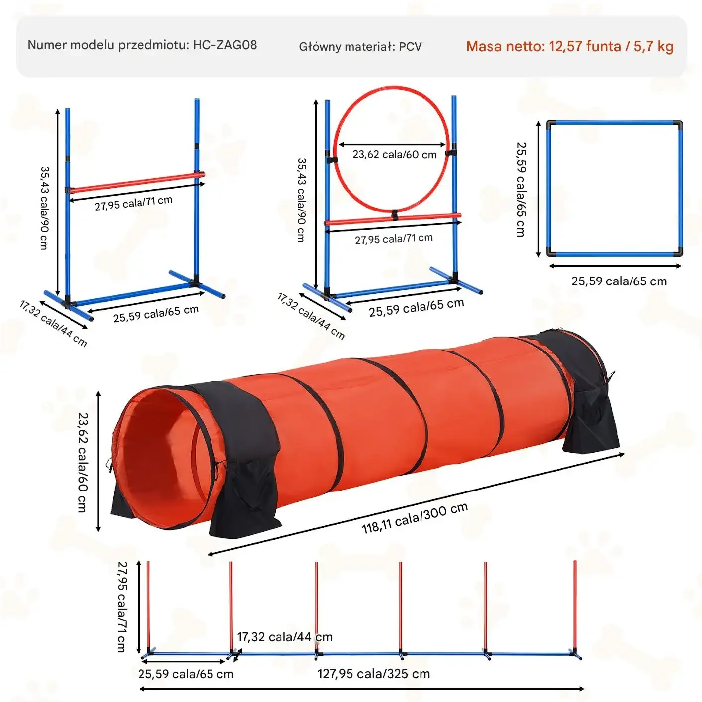 - ➡️ Regulowana wysokość przeszkód, dopasowana do różnych psów.
