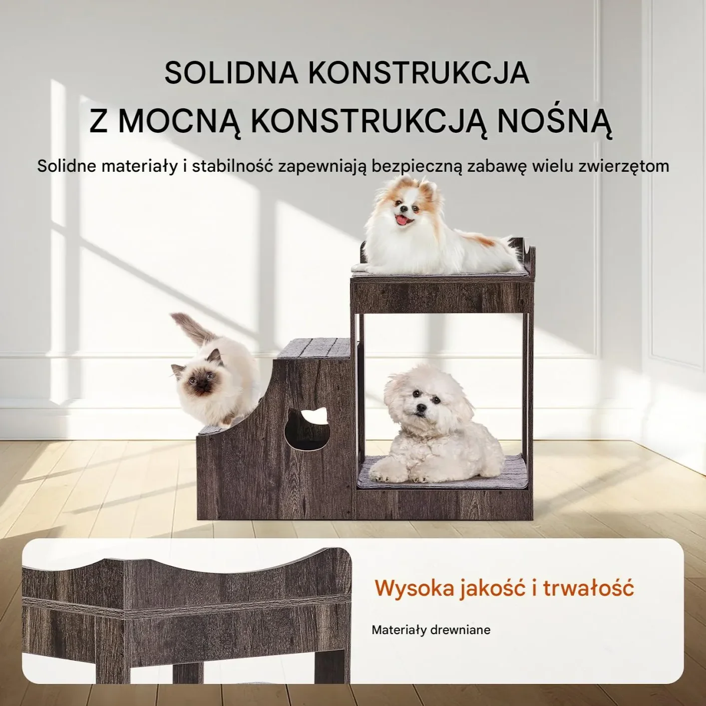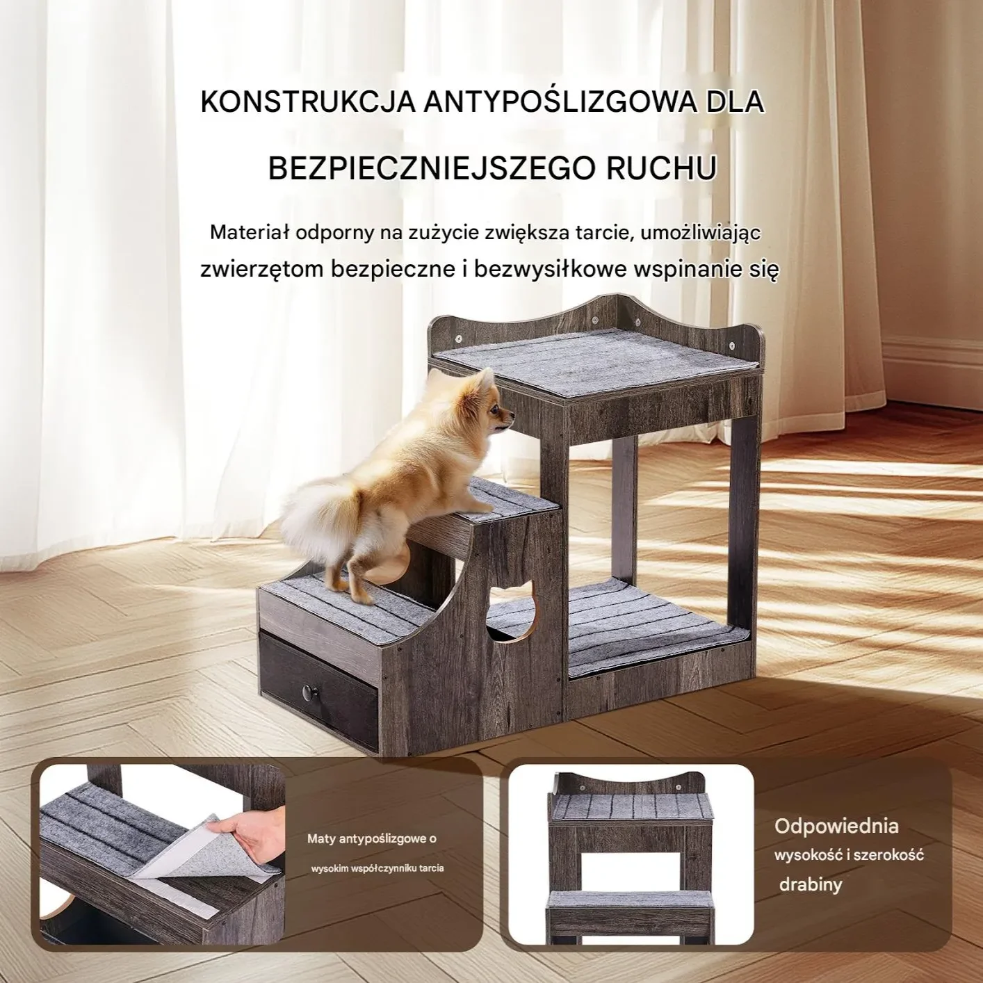 Legowisko piętrowe dla psa kota schody z szufladami 3w1