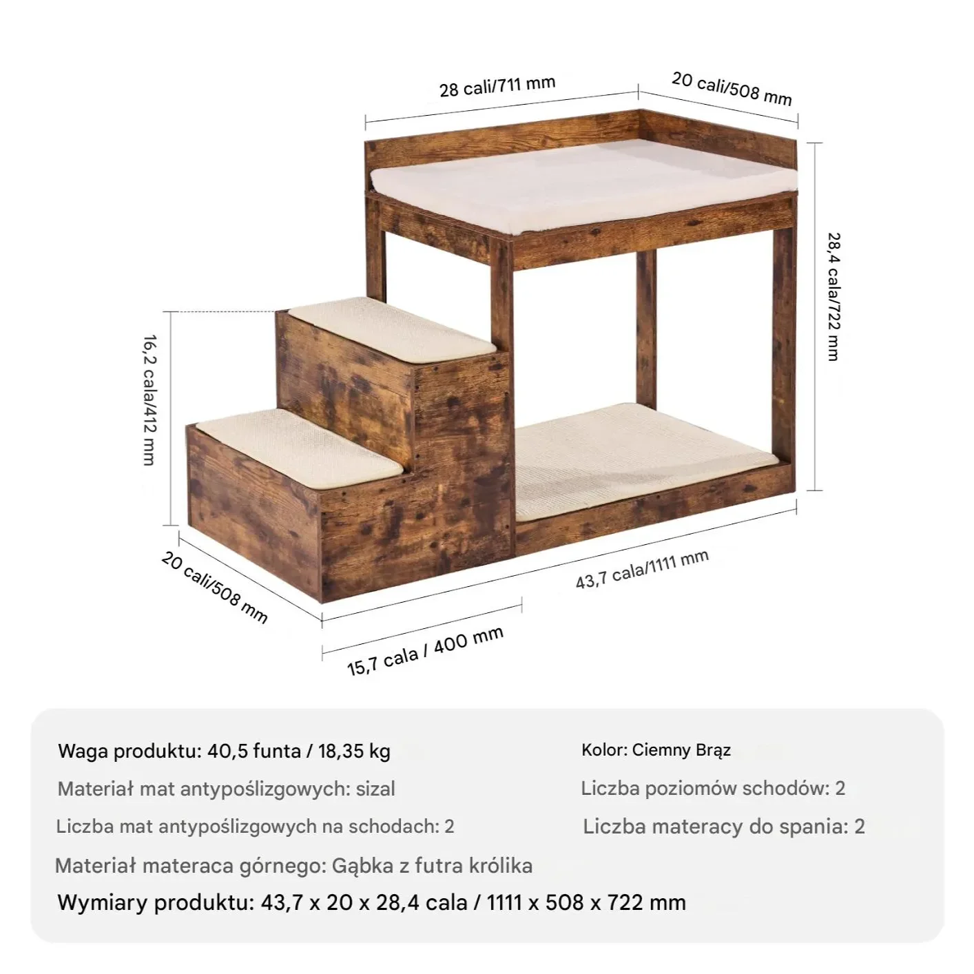 - ✅ Bezpieczeństwo przede wszystkim: Każdy stopień drabinki został pokryty antypoślizgową matą, co gwarantuje pewne i bezpieczne poruszanie się zwierzaka. Odpowiednia wysokość i szerokość schodków chroni stawy przed urazami.