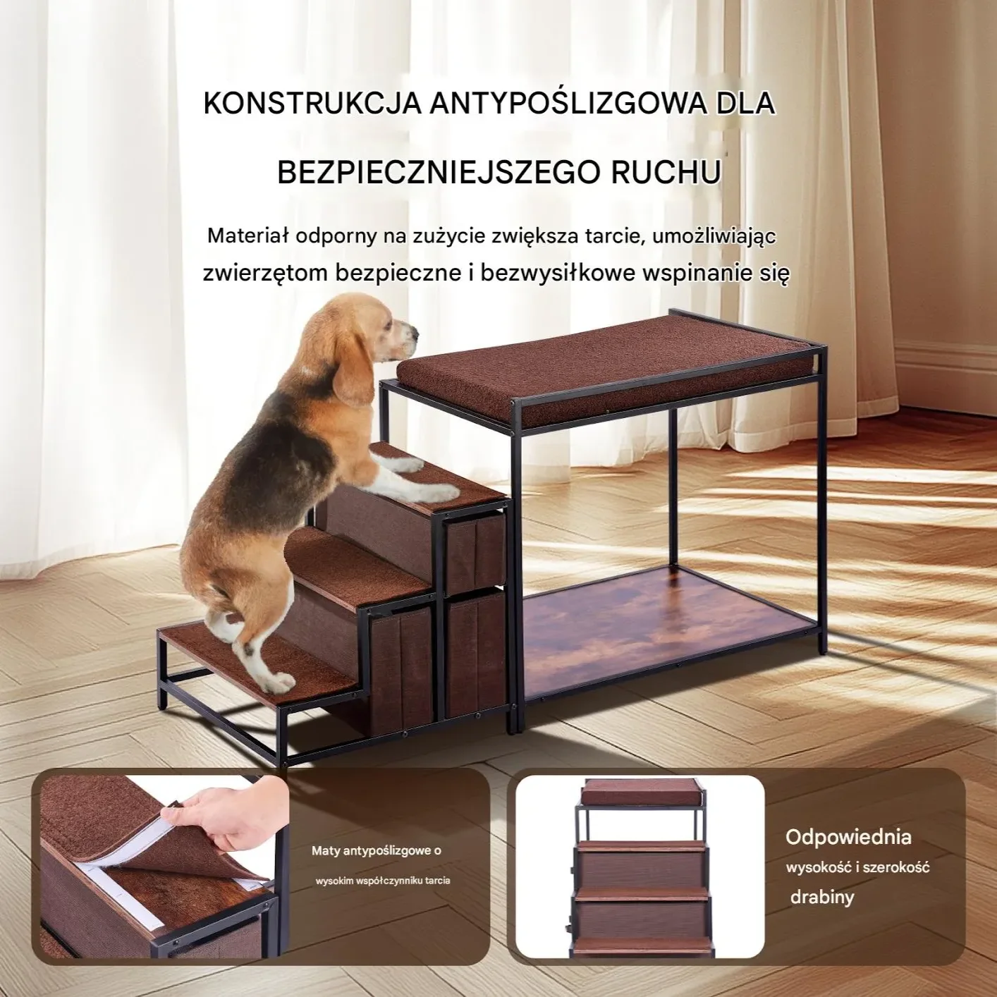 Legowisko piętrowe dla psa kota schody z szufladami 3w1