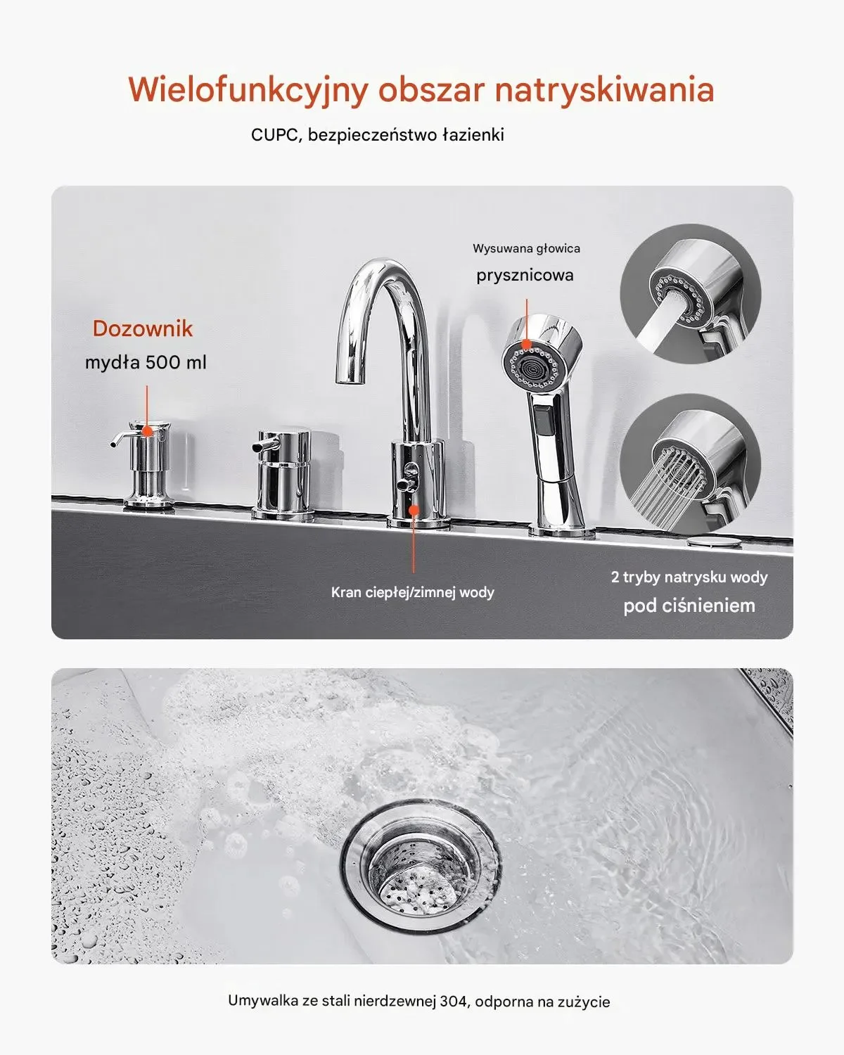 - ✅ Certyfikowane bezpieczeństwo: Certyfikaty CUPC i NSF gwarantują najwyższe standardy bezpieczeństwa łazienkowego