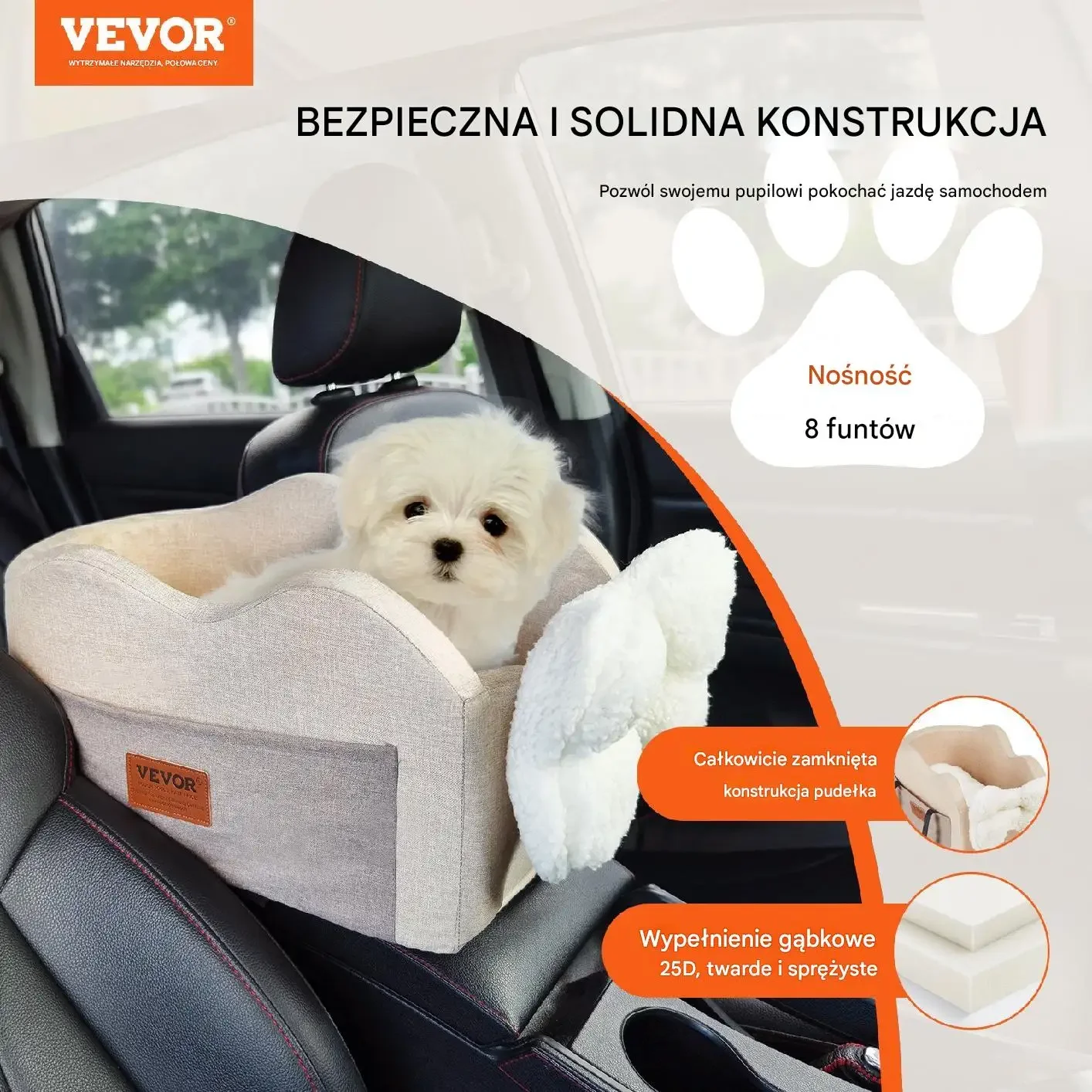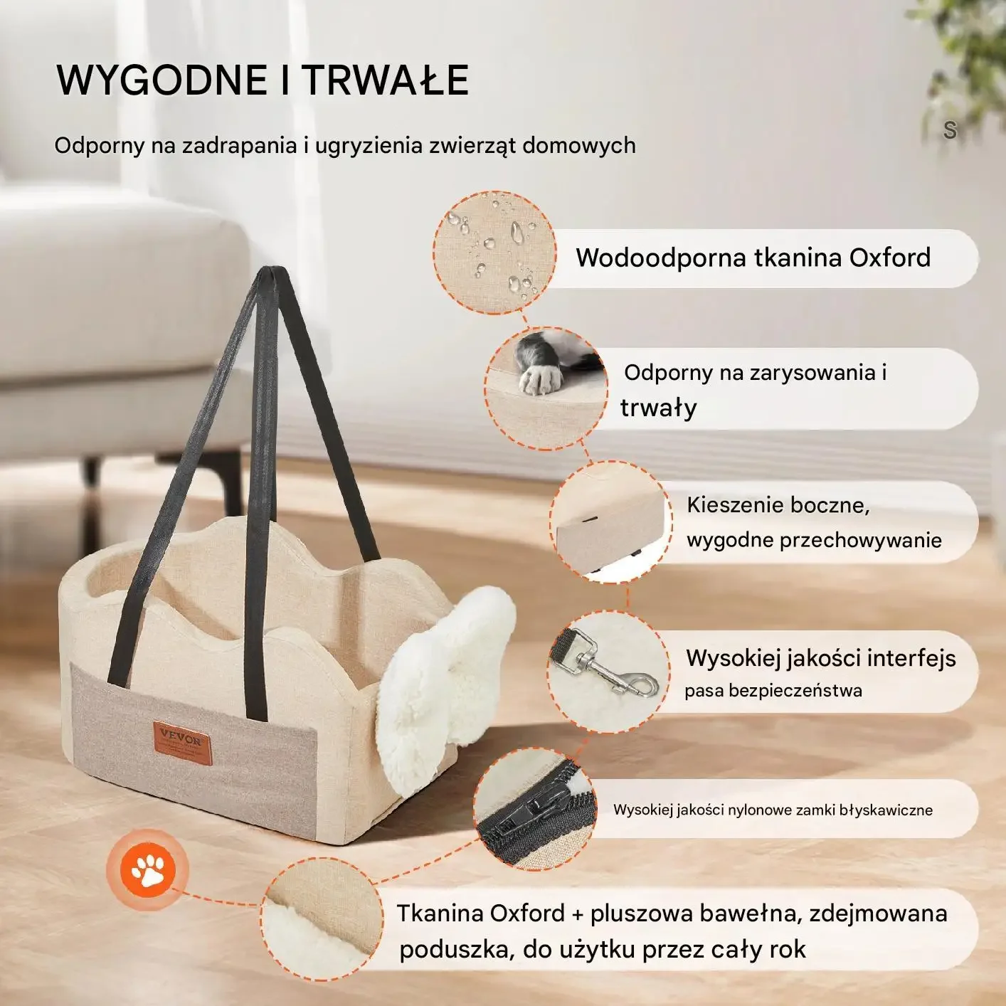 Legowisko samochodowe na konsolę środkową dla psa do 3,6 kg z pasem bezpieczeństwa – kolor kremowy
