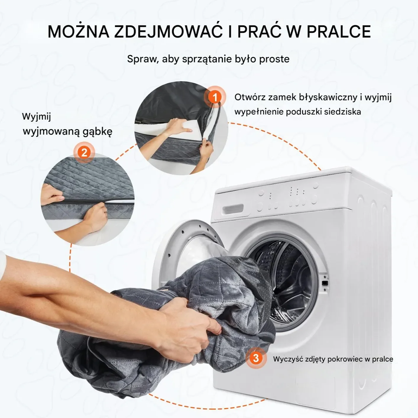 - ✅ Całkowicie zdejmowany pokrowiec z zamkiem – szybkie pranie w pralce