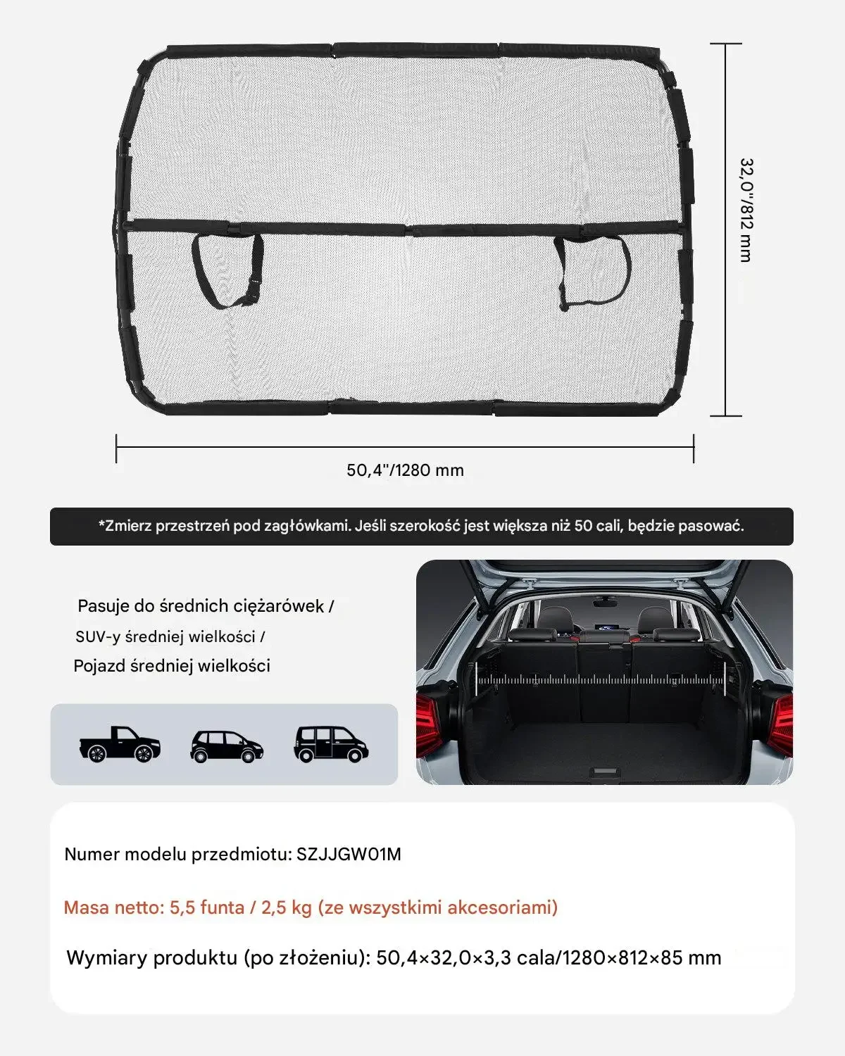 - ✅ Uniwersalny rozmiar: 127 × 81 cm – pasuje do większości sedanów, SUV-ów i pickupów