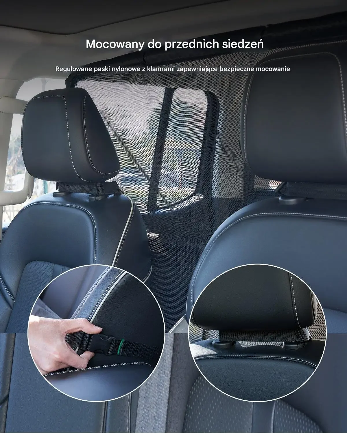 - Montaż: Na zagłówki przednich siedzeń