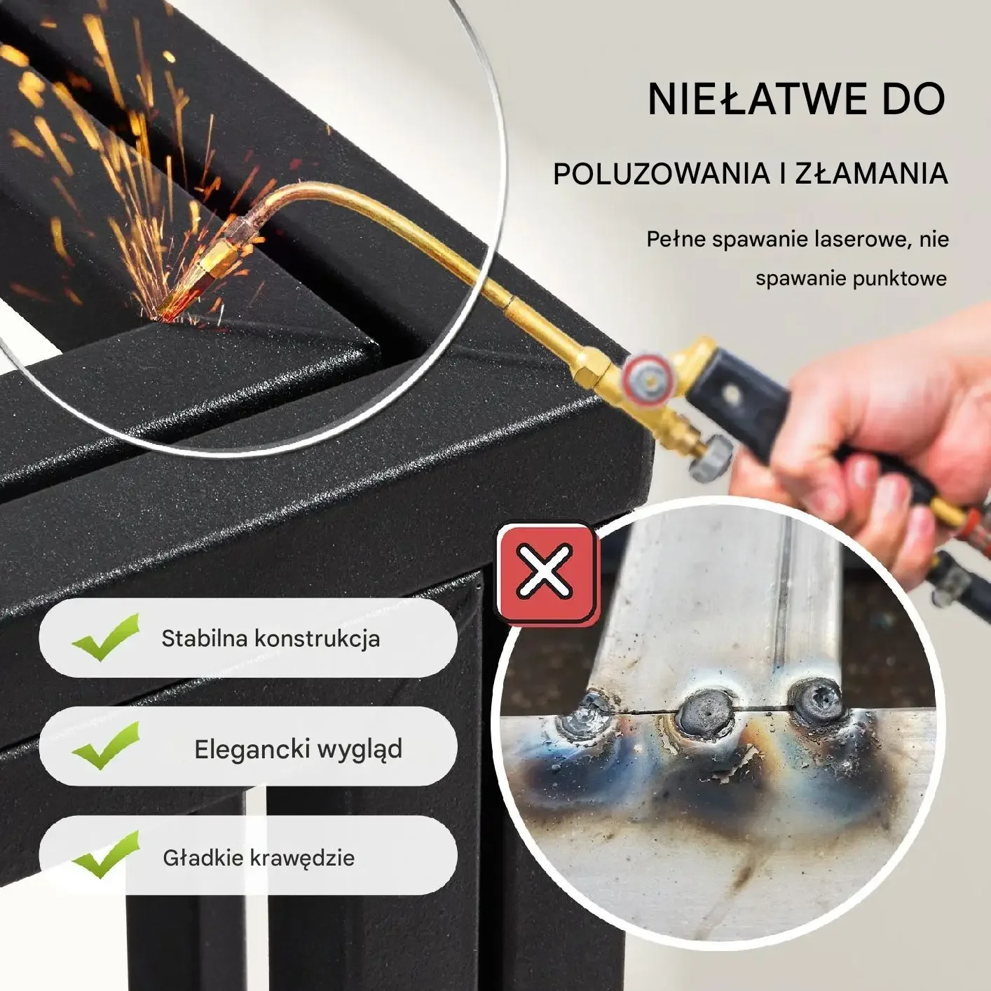 Nasza niezniszczalna klatka dla psa została wykonana z zastosowaniem pełnego spawania laserowego, co zapewnia równomierne i solidne spoiny. Dzięki temu jest bardziej stabilna i gładka. Wytrzymała rama z ocynkowanych stalowych rur oferuje wyjątkową trwałość i stabilność, zwiększając żywotność klatki.