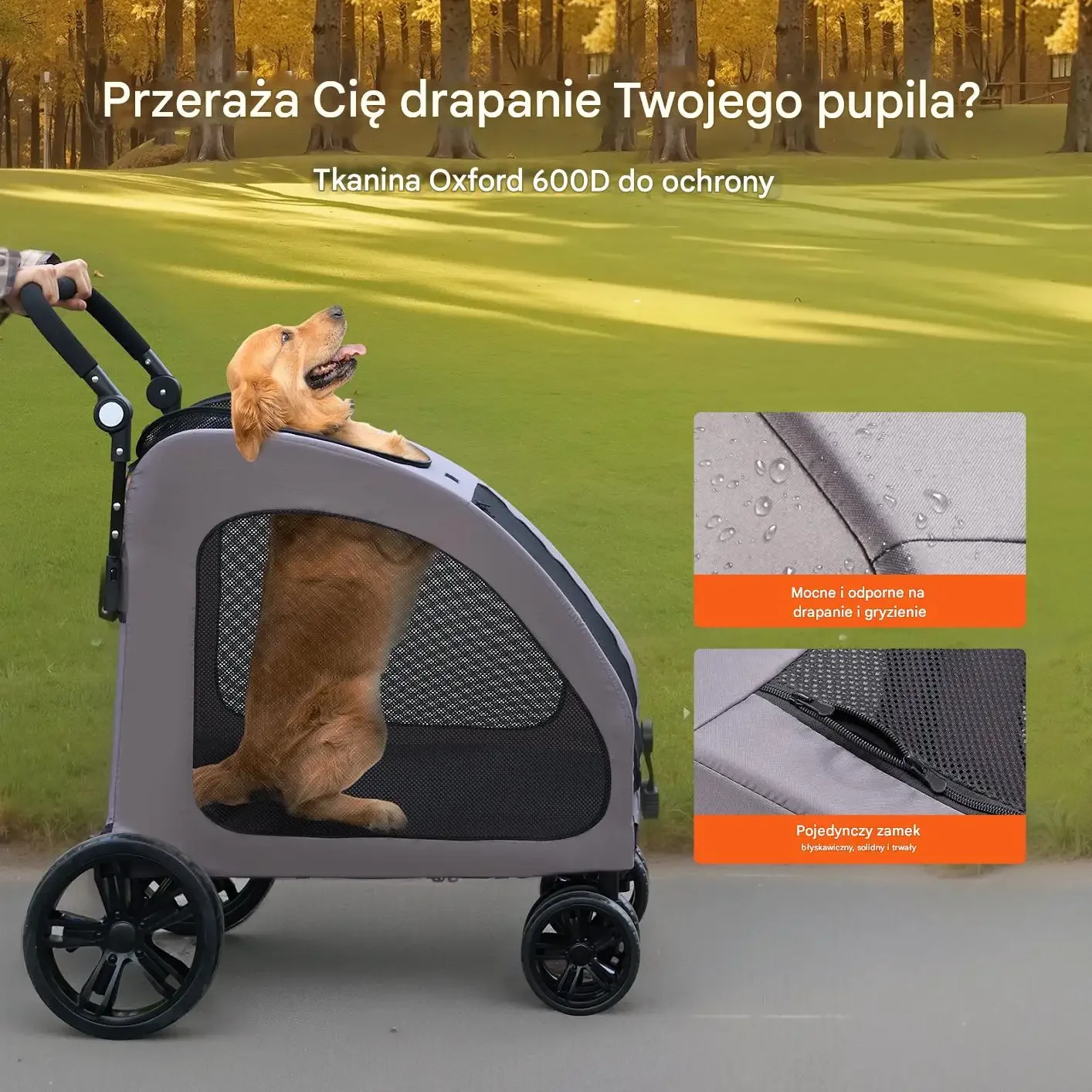 • Wytrzymały materiał: Tkanina Oxford 600D jest wyjątkowo odporna na zadrapania i gryzienie, zapewniając trwałość na lata
