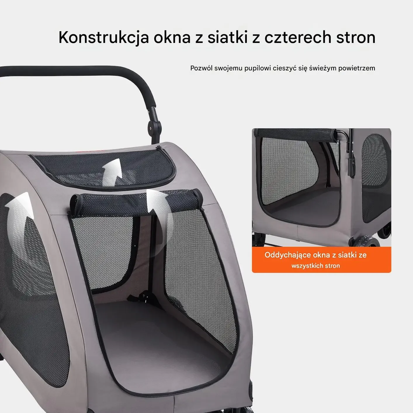 • Doskonała wentylacja: Cztery okna z siatki dają zwierzęciu pełny widok na otoczenie i stały dostęp świeżego powietrza