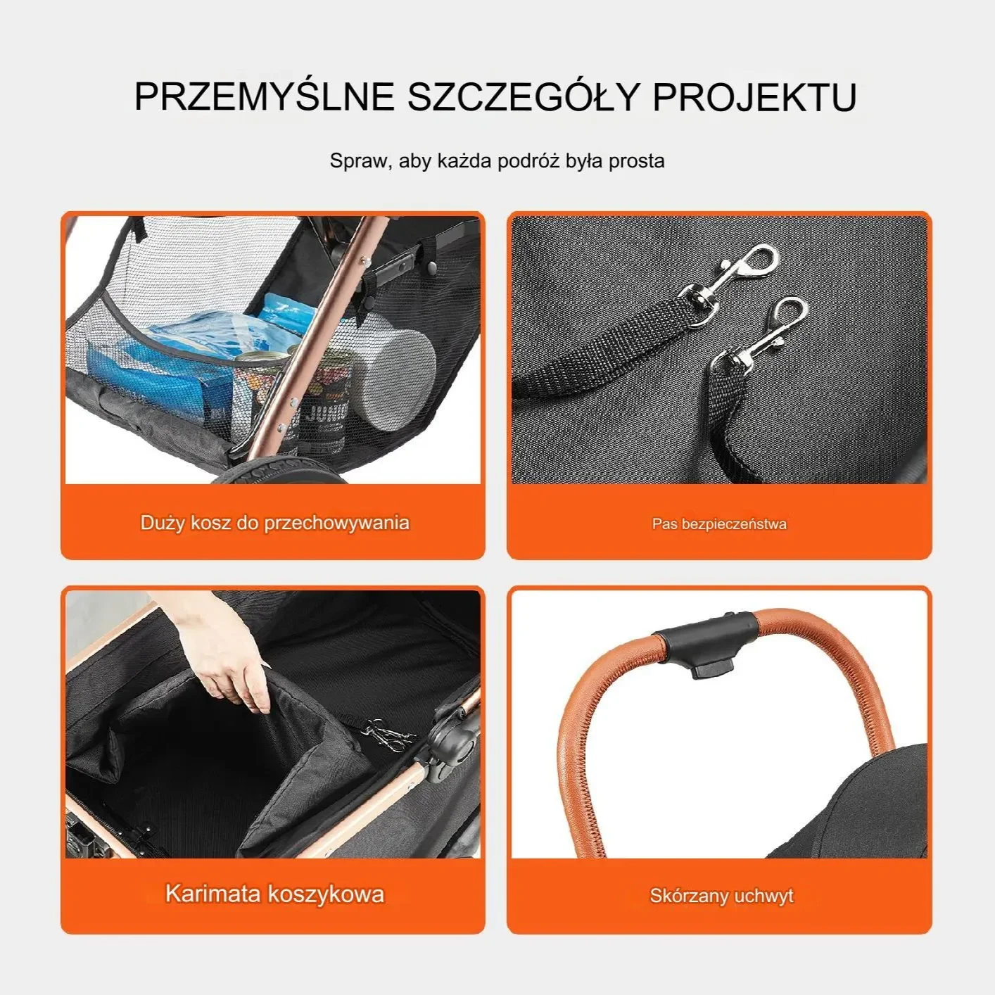 - Ten wózek rozwiązuje problem zmęczenia pupila, trudności z przenoszeniem go na rękach czy braku miejsca na akcesoria podczas spacerów – wszystko w jednym stylowym i praktycznym produkcie!