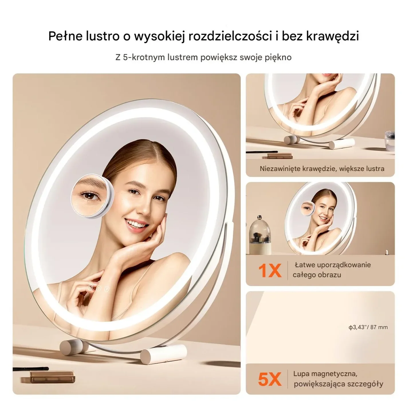 - ⭐ Makijaż i pielęgnacja twarzy – zapewnia doskonałą widoczność nawet najdrobniejszych detali