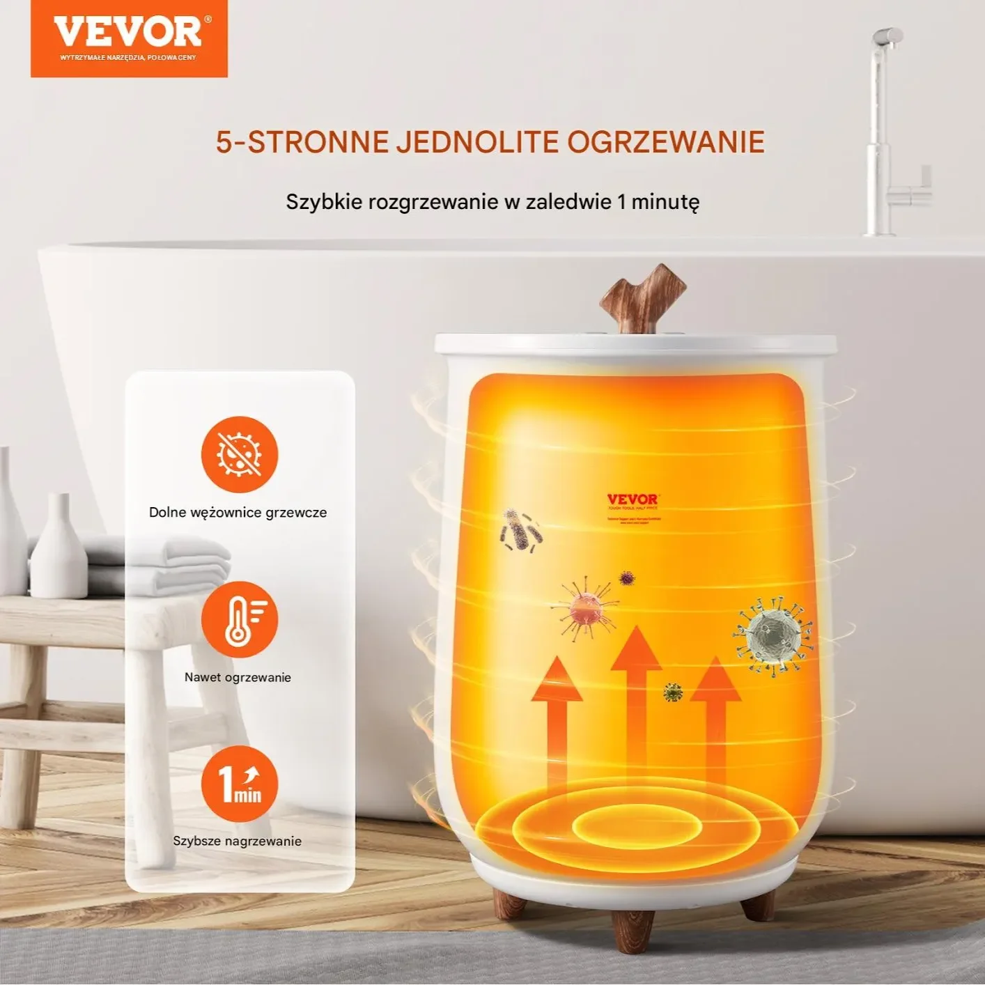 • Szybkie nagrzewanie – ciepłe ręczniki już w kilka minut
