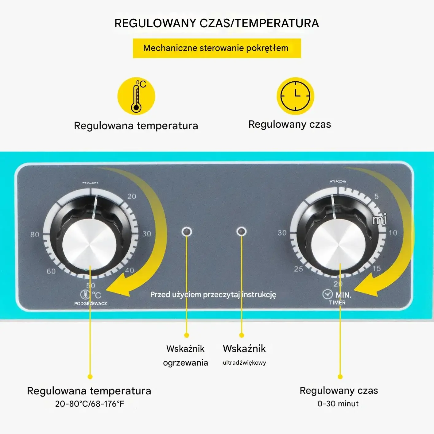 - Zakres czasu pracy: 0–30 minut (regulacja pokrętłem)