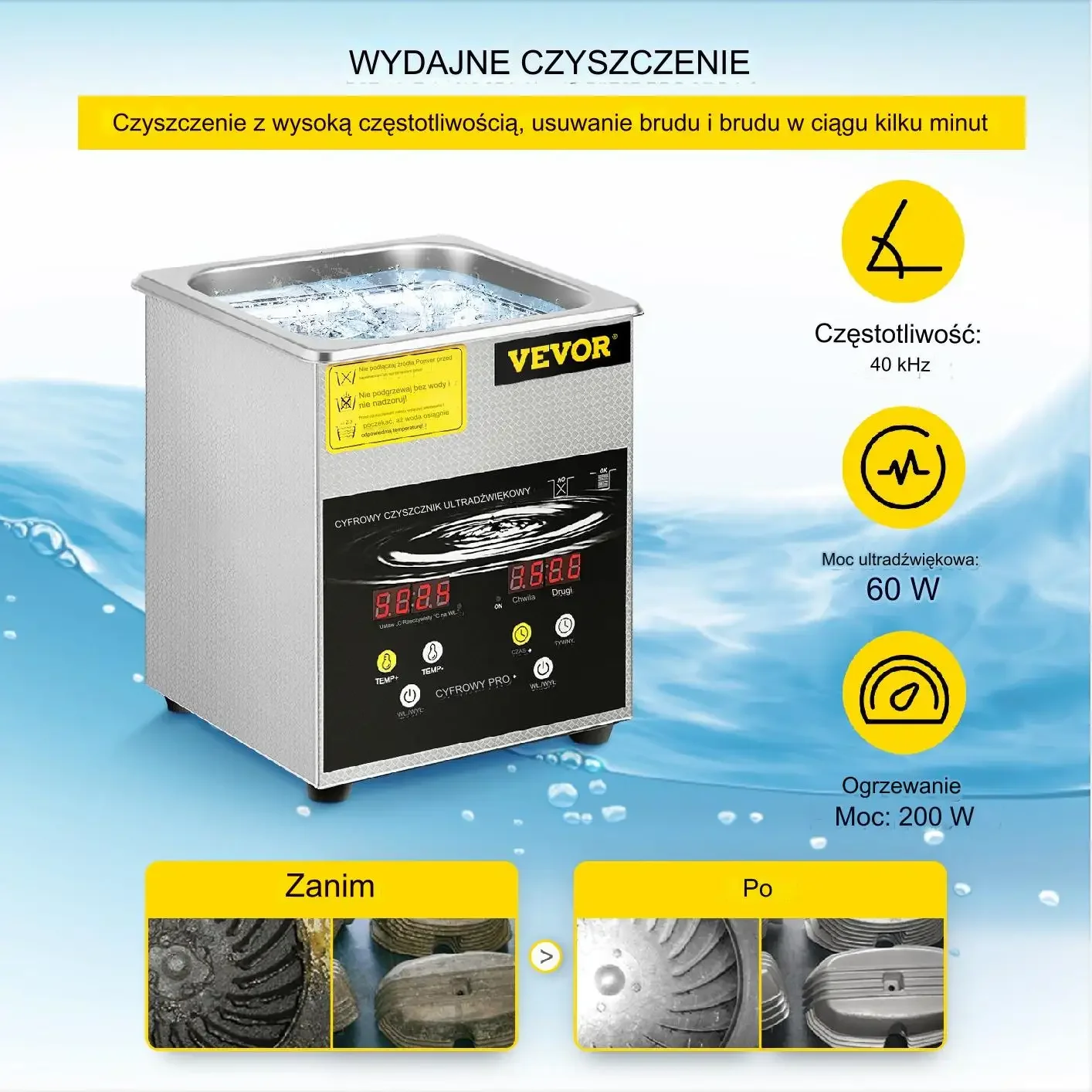 Zamów przenośną myjkę ultradźwiękową 2L 60W i ciesz się perfekcyjnie czystymi przedmiotami każdego dnia. Zyskaj komfort, bezpieczeństwo i profesjonalne rezultaty w każdej sytuacji!