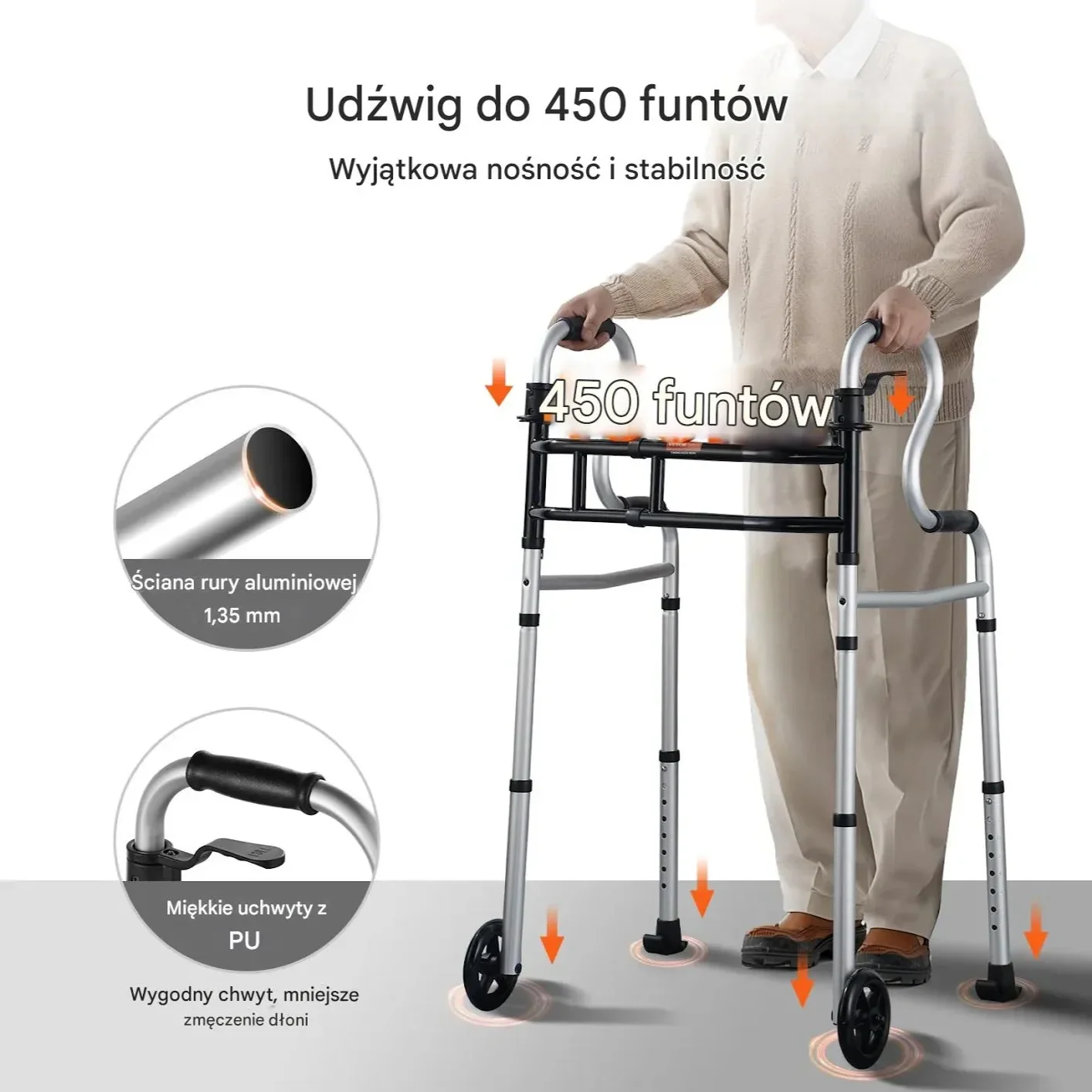 - ✅ Wytrzymała konstrukcja: Aluminiowa rama o grubości 1,35 mm z nośnością do 204 kg