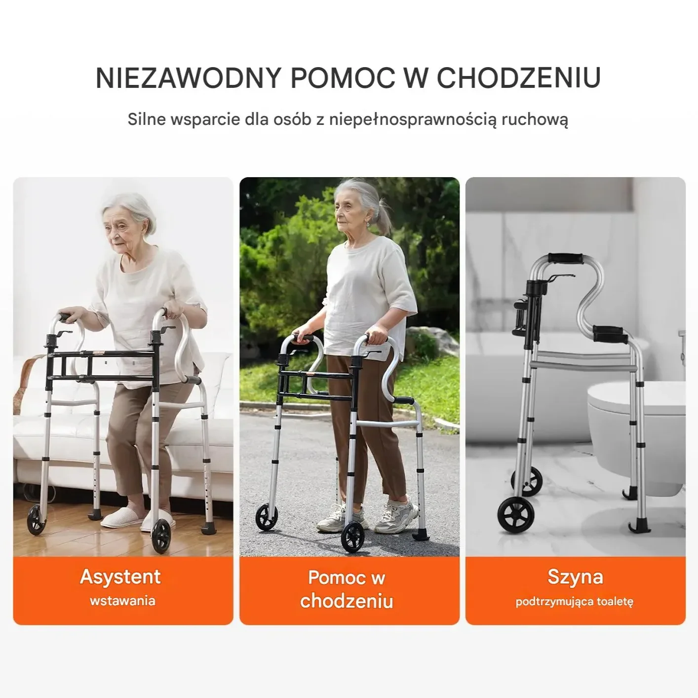 - ✅ Wielofunkcyjność: 3w1 – pomoc przy chodzeniu, wstawaniu i jako poręcz toaletowa