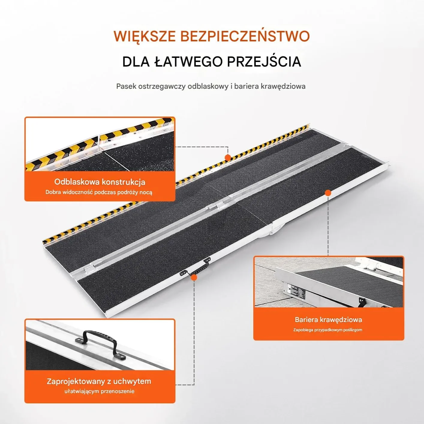 ⭐ Pokonywanie progów, schodów i krawężników – ułatwia codzienną mobilność osobom na wózkach inwalidzkich i z ograniczoną sprawnością ruchową.