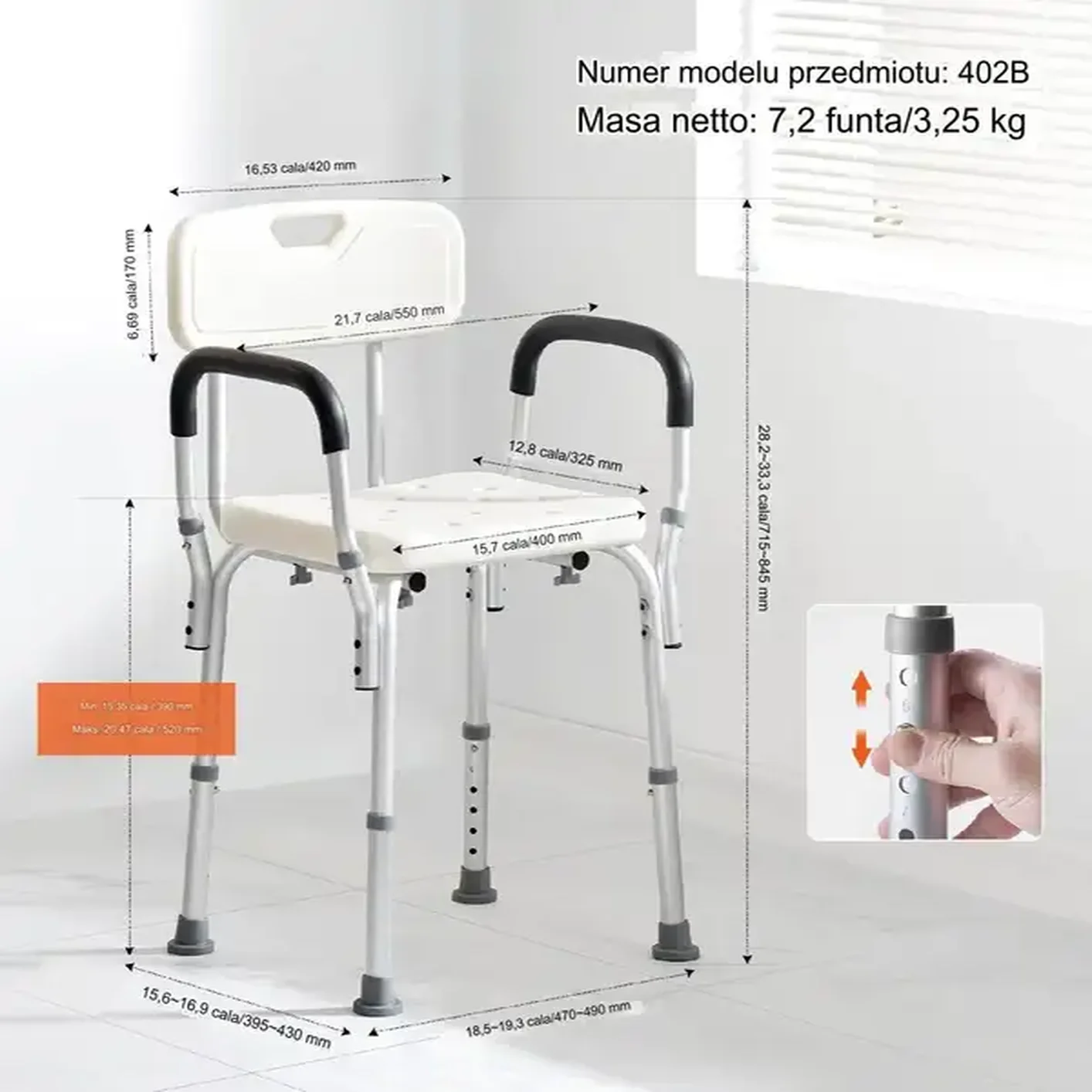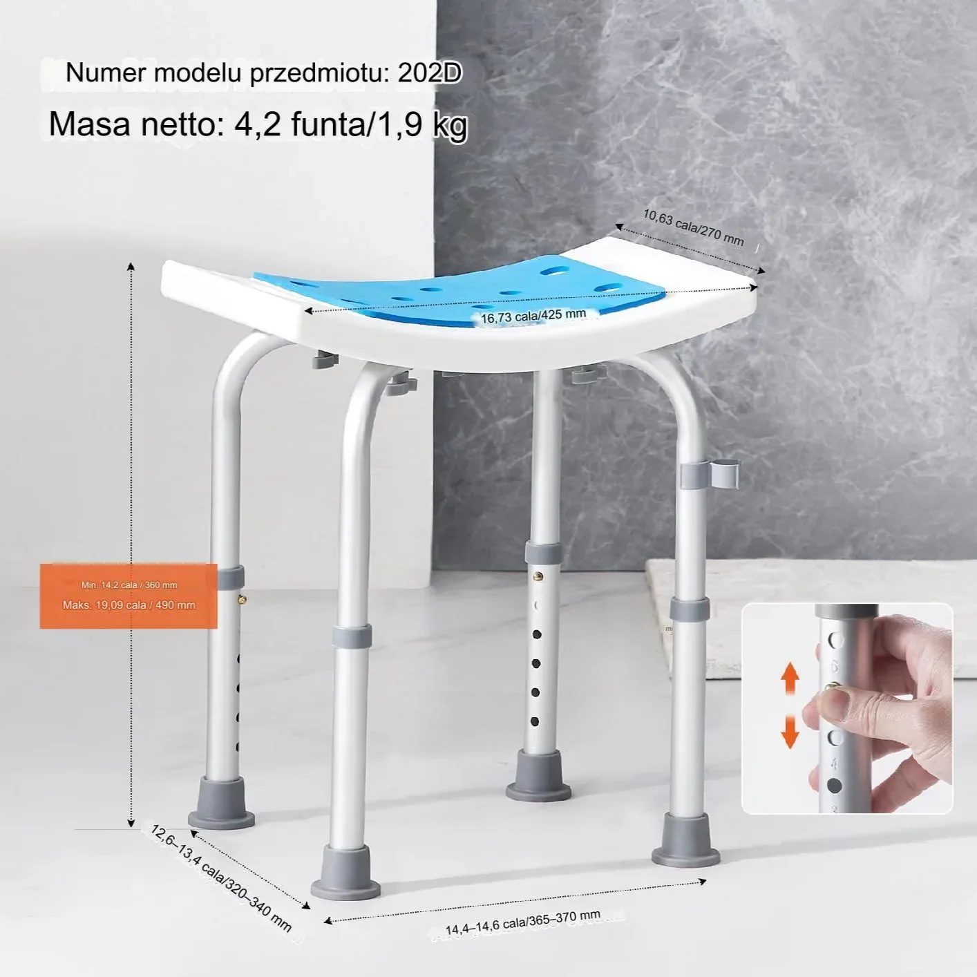 Wygodne i stabilne krzesło prysznicowe o maksymalnym dopuszczalnym obciążeniu do 158 kg. Doskonałe rozwiązanie dla osób poszukujących solidnego i funkcjonalnego siedziska podczas codziennej higieny. Konstrukcja wykonana z trwałych materiałów gwarantuje bezpieczne użytkowanie, a antypoślizgowe nóżki zapewniają dodatkową stabilność. Regulowana wysokość pozwala dopasować krzesło do preferowanej pozycji.