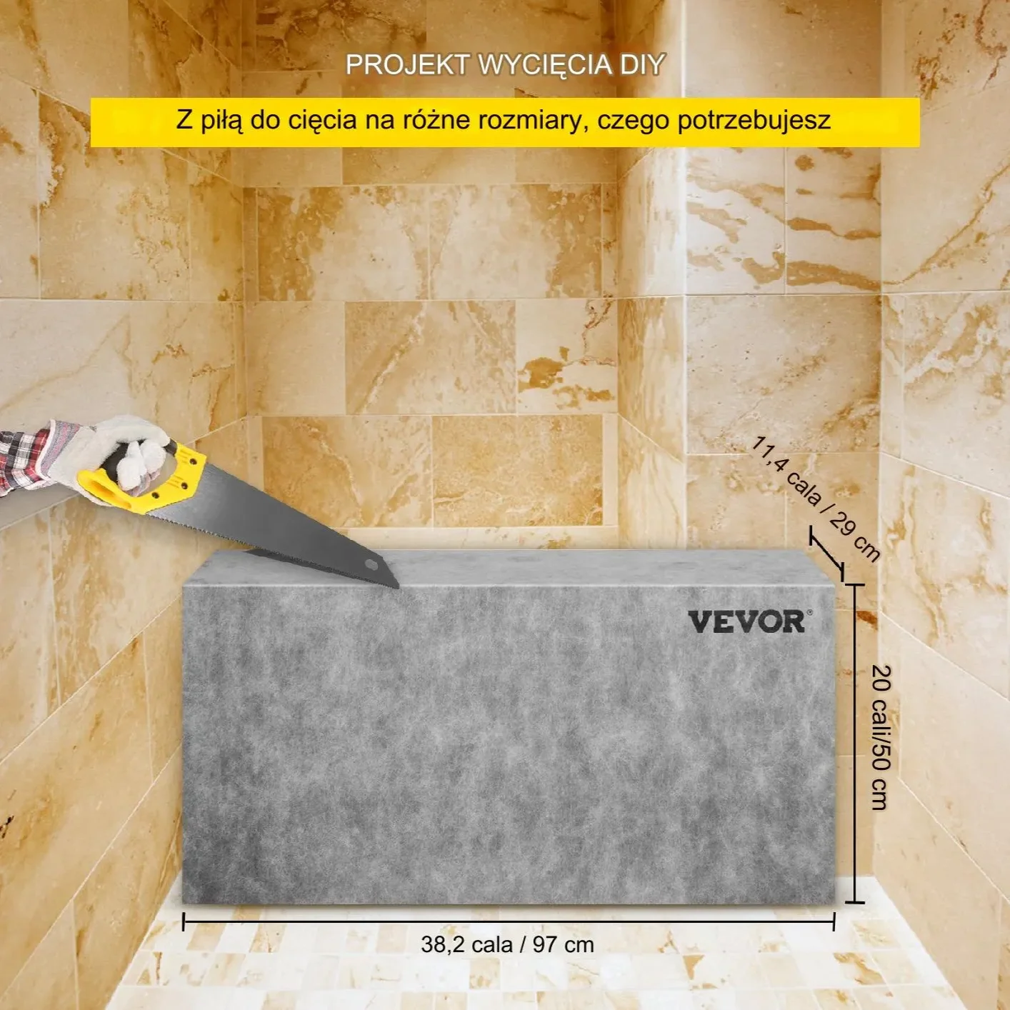 Rozmiar produktu: 97 x 29 x 50 cm. Ławka prysznicowa z płytek mieści się w przestrzeni standardowej wanny. Można jednak bezproblemowo dostosować rozmiar płytki. W razie potrzeby można przyciąć płytkę z boku na bok, aby zmniejszyć jej rozmiar. Po prostu nie spiesz się i zmierz dwa razy przed cięciem.