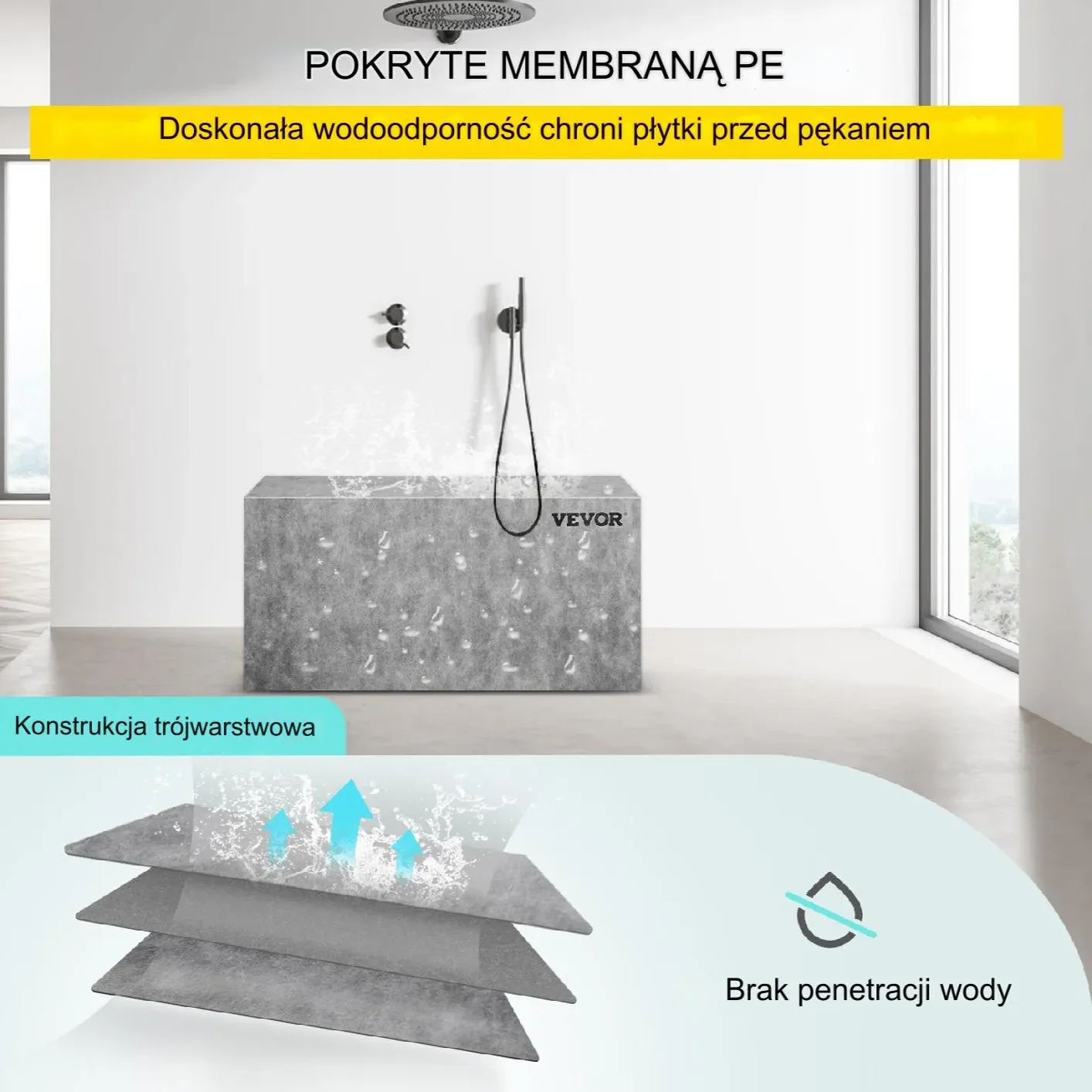 Nasze gotowe siedzisko prysznicowe jest wyposażone w wodoodporną membranę. Trójwarstwowa membrana utrzymuje przepływ wody na powierzchni płytki, bez gromadzenia się wody. Będziesz zaskoczony odpornością na pleśń pod siedziskiem z płytek po niezliczonych latach korzystania z naszych produktów.