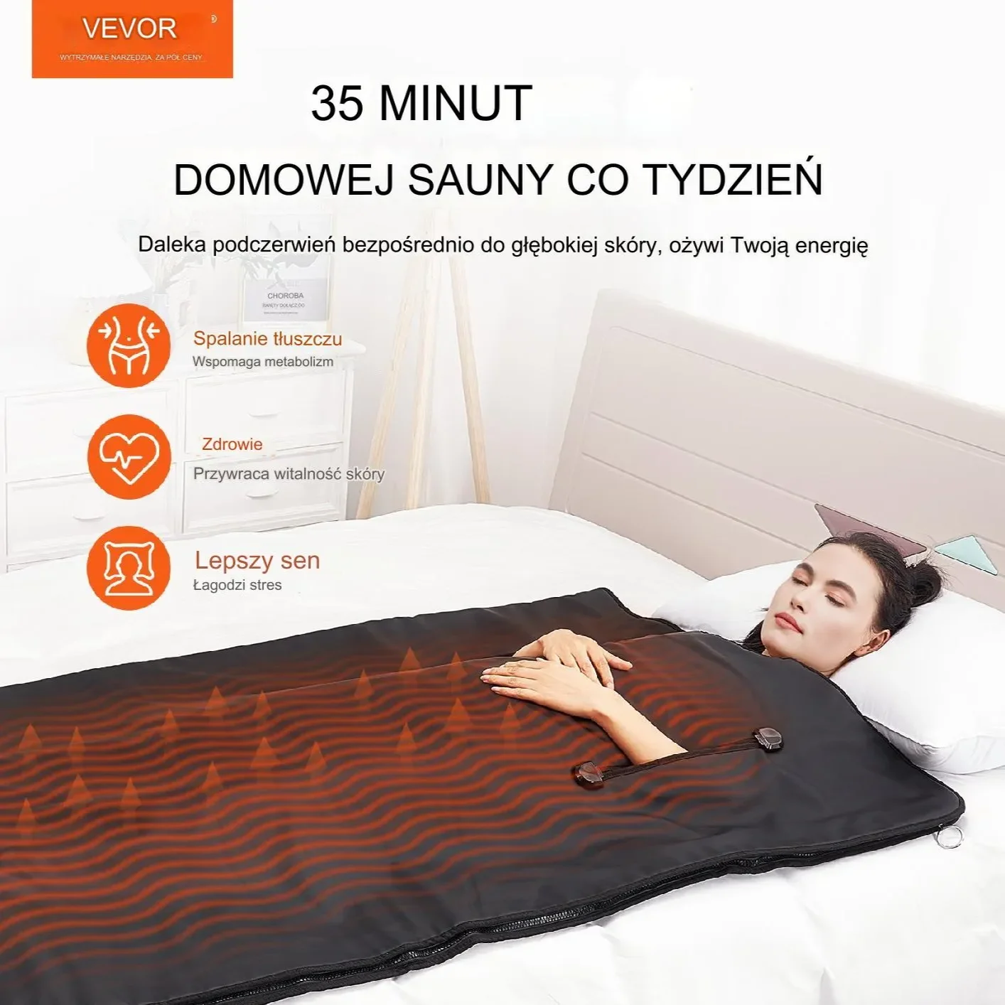 Innowacyjny koc do sauny na podczerwień to domowe SPA, które pomoże Ci zadbać o sylwetkę i zdrowie. Dzięki połączeniu ogrzewania dalekiej podczerwieni i terapeutycznych jadeitowych kamieni, wspomaga eliminację toksyn, przyspiesza metabolizm i poprawia wygląd skóry – wszystko to w zaciszu własnego domu.