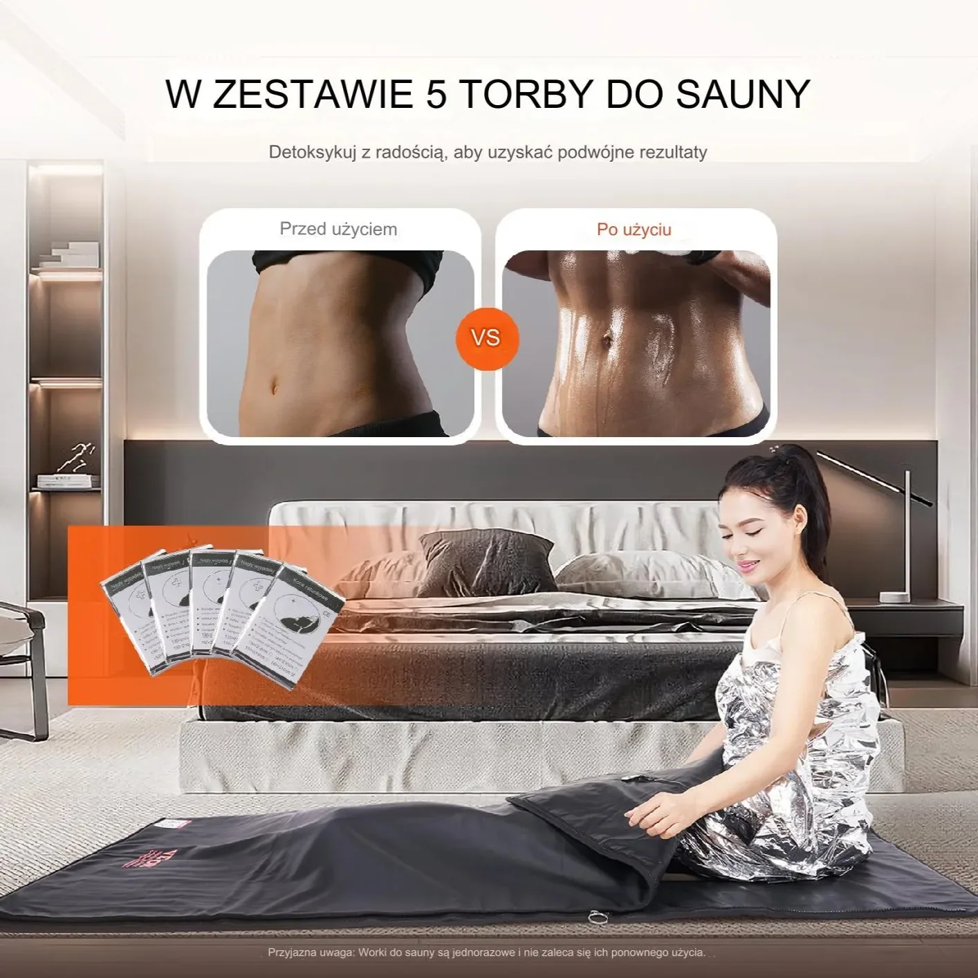 - ✅ Bonus w zestawie: Pięć dodatkowych wkładów sauny zwiększających intensywność pocenia się i efektywność terapii.