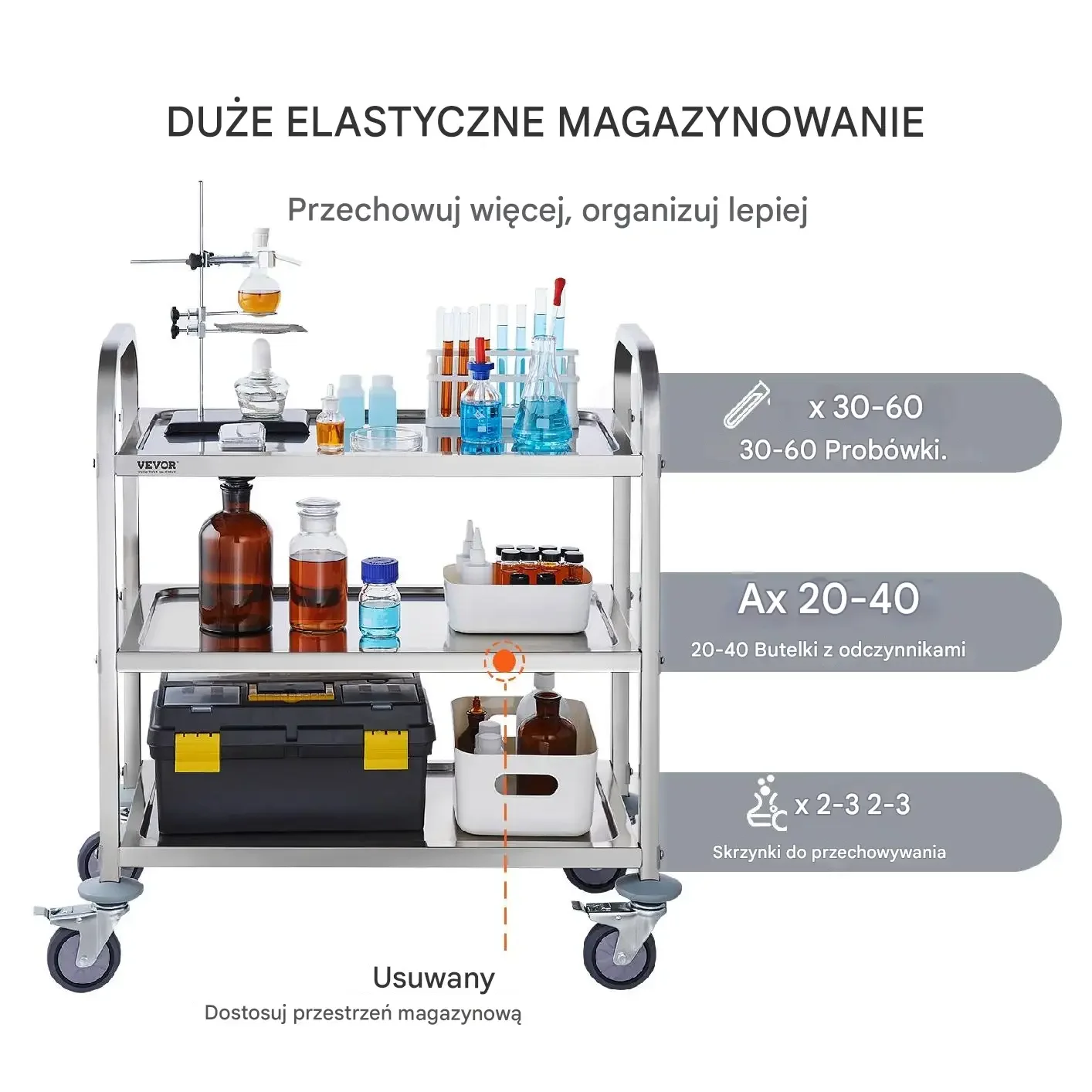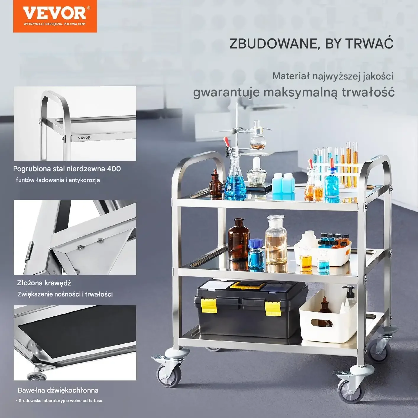 Zainwestuj w trwały i funkcjonalny wózek laboratoryjny VEVOR, który sprosta wymaganiom profesjonalistów z różnych branż. Solidna konstrukcja, wysoka nośność i praktyczne rozwiązania zapewnią efektywność i wygodę pracy każdego dnia. Zamów teraz i usprawnij organizację swojego miejsca pracy!