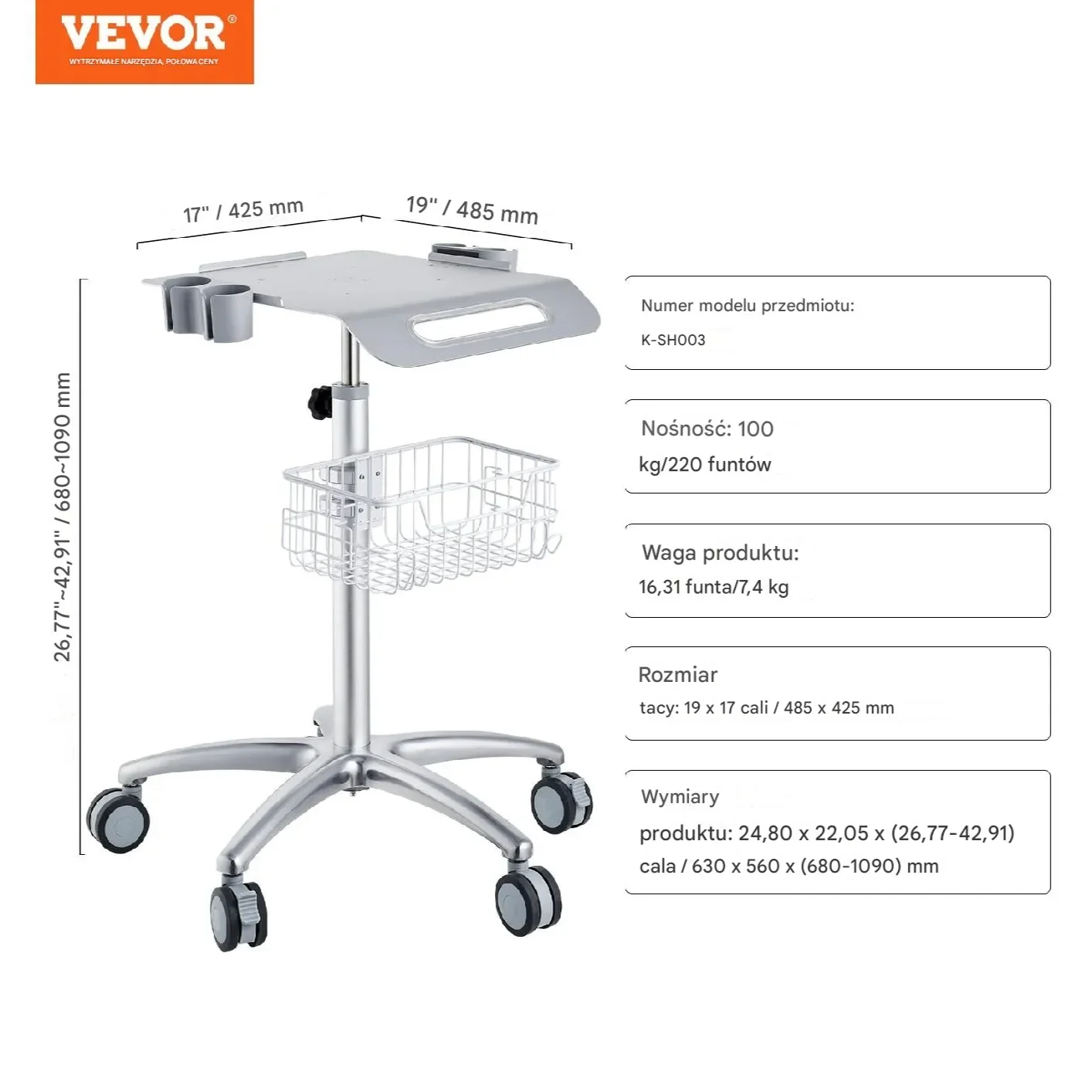 - Wymiary wózka: 550 x 660 x (790 – 1360) mm (regulowana wysokość)